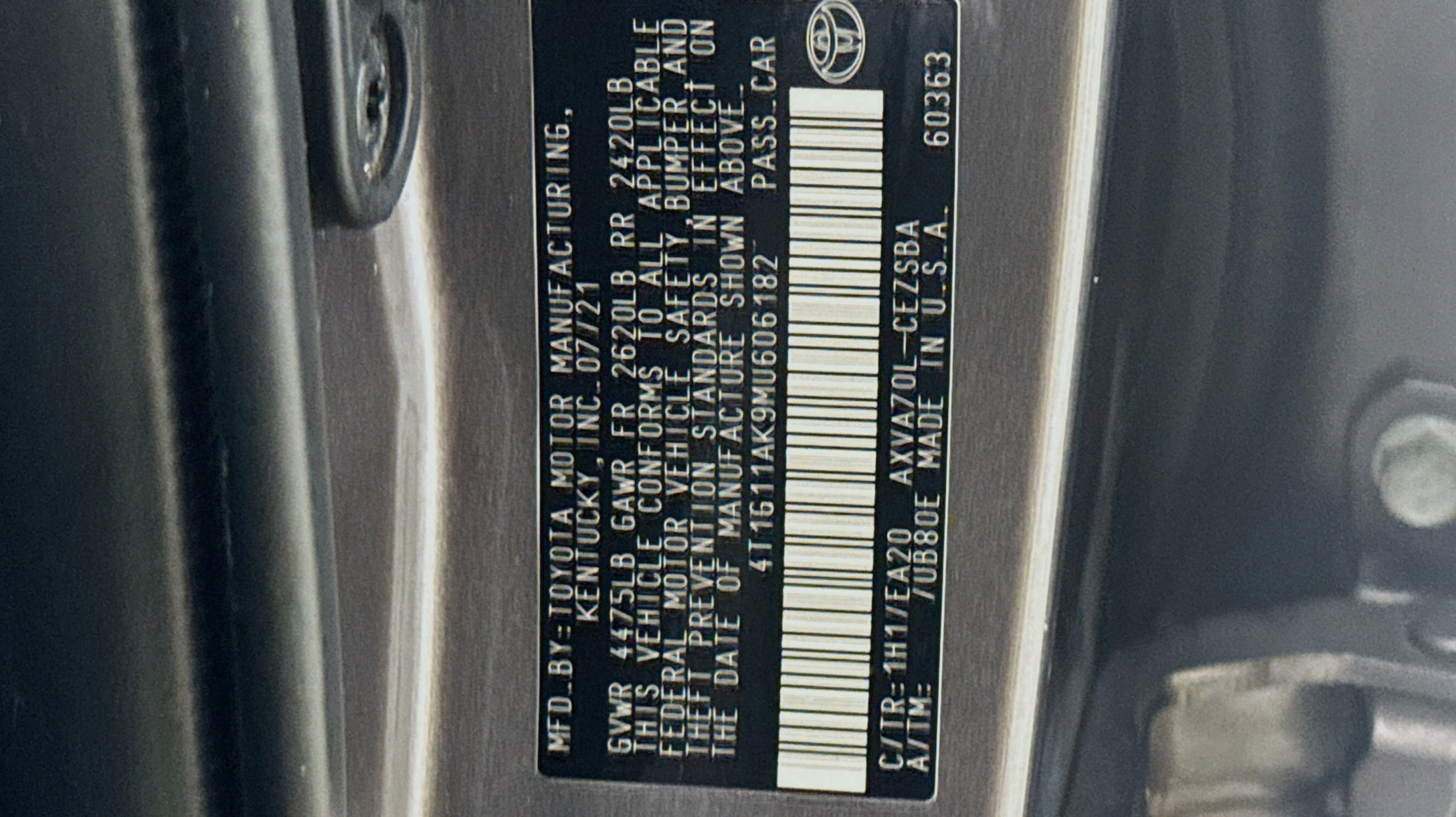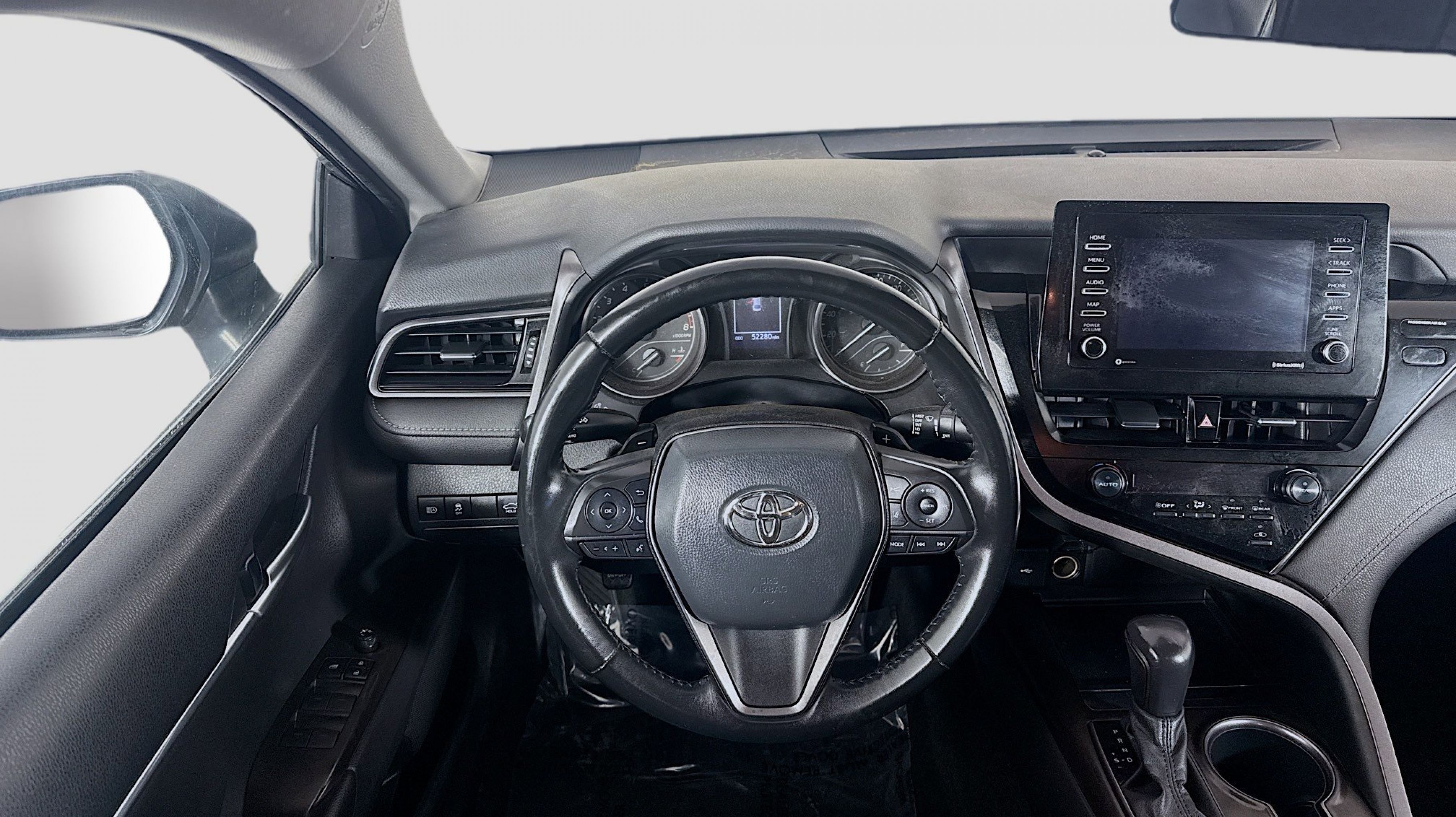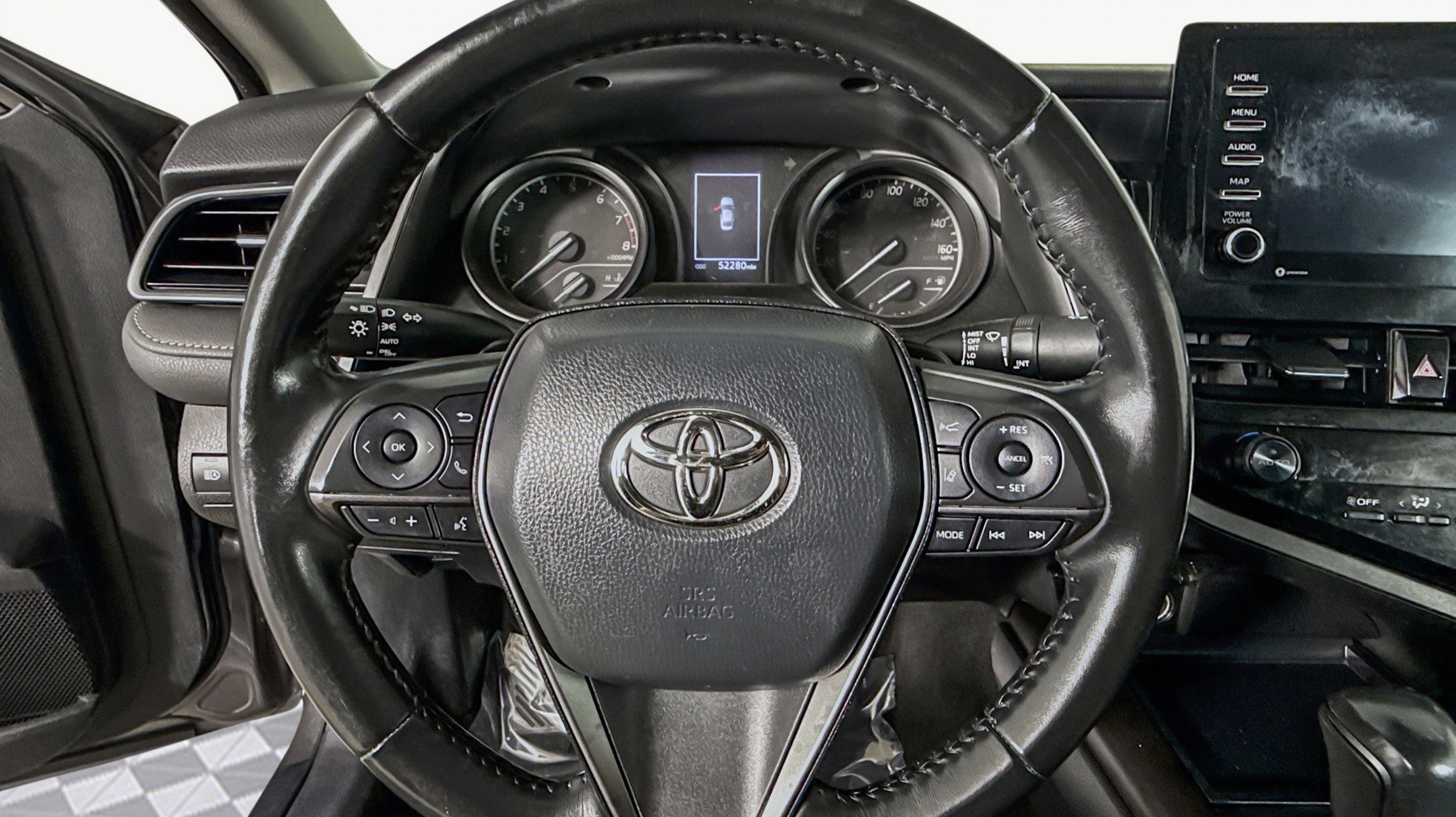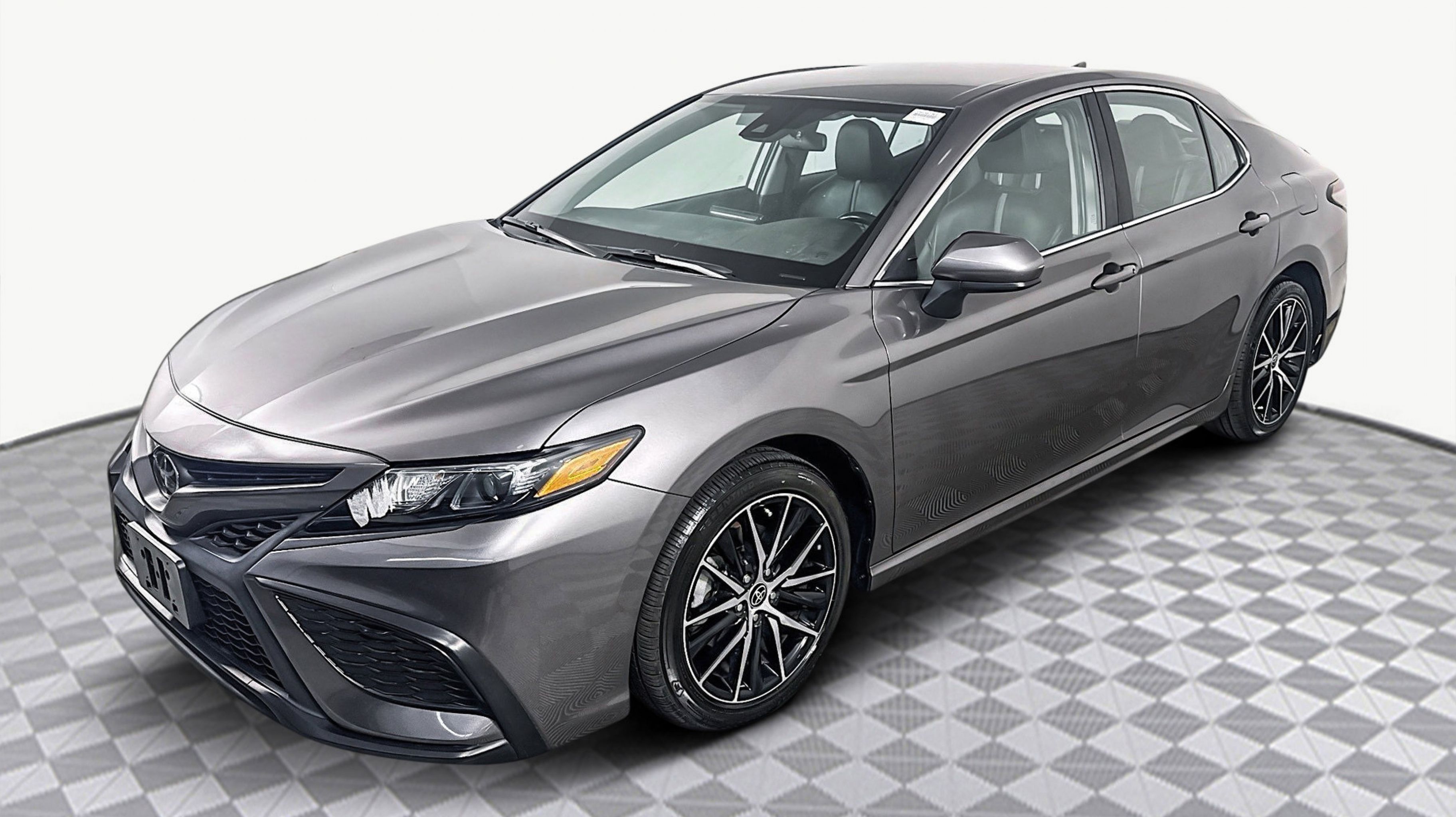 Predawn Gray Mica 2021 Toyota Camry SE FWD 8-Speed Automatic 2.5L I4 DOHC 16V Black w/Fabric Seat Trim, 4-Wheel Disc Brakes, 6 Speakers, ABS brakes, Air Conditioning, Alloy wheels, AM/FM radio: SiriusXM, Apple CarPlay/Android Auto, Auto High-beam Headlights, Automatic temperature control, Brake assist, Bumpers: body-color, Delay-off headlights, Driver door bin, Driver vanity mirror, Dual front impact airbags, Dual front side impact airbags, Electronic Stability Control, Emergency communication system: Safety Connect with 1-year trial, Exterior Parking Camera Rear, Fabric Seat Trim w/Sport SofTex, Four wheel independent suspension, Front anti-roll bar, Front Bucket Seats, Front Center Armrest, Front reading lights, Fully automatic headlights, Illuminated entry, Knee airbag, Low tire pressure warning, Occupant sensing airbag, Outside temperature display, Overhead airbag, Overhead console, Panic alarm, Passenger door bin, Passenger vanity mirror, Power door mirrors, Power driver seat, Power steering, Power windows, Radio data system, Radio: AM/FM Audio System, Rear anti-roll bar, Rear seat center armrest, Rear side impact airbag, Rear window defroster, Remote keyless entry, Security system, Speed control, Speed-sensing steering, Split folding rear seat, Spoiler, Steering wheel mounted audio controls, Tachometer, Telescoping steering wheel, Tilt steering wheel, Traction control, Trip computer, Variably intermittent wipers, Wheels: 8.0J x 18 Black Machined-Finish Alloy, Black w/Fabric Seat Trim.