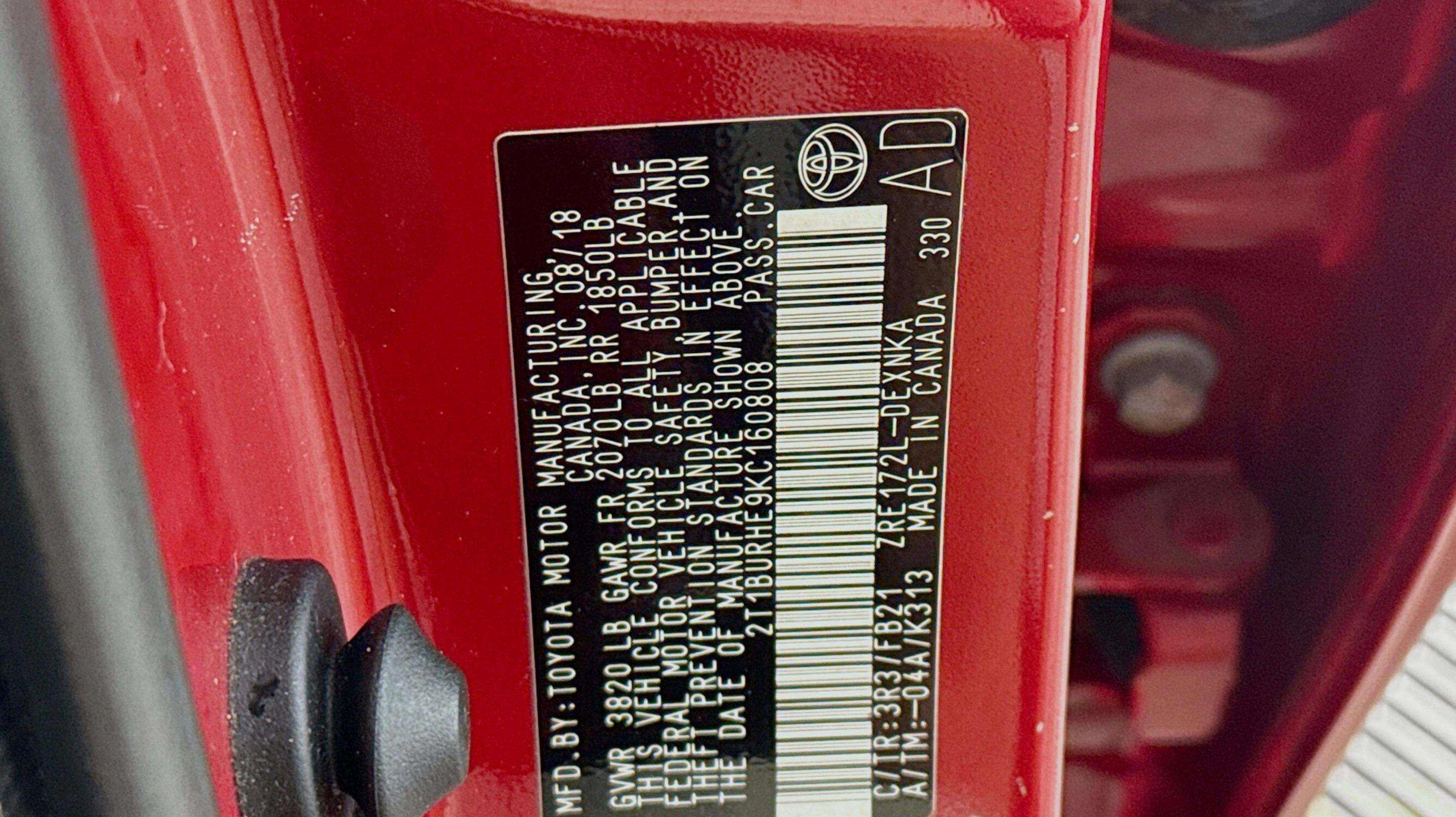 Barcelona Red Metallic 2019 Toyota Corolla LE FWD CVT 1.8L I4 DOHC ABS brakes, Active Cruise Control, Electronic Stability Control, Heated door mirrors, Illuminated entry, Low tire pressure warning, Remote keyless entry, Traction control, 6 Speakers, Air Conditioning, AM/FM radio, Auto High-beam Headlights, Automatic temperature control, Brake assist, Bumpers: body-color, CD player, Delay-off headlights, Driver door bin, Driver vanity mirror, Dual front impact airbags, Dual front side impact airbags, Exterior Parking Camera Rear, Fabric Seat Trim, Front anti-roll bar, Front Bucket Seats, Front Center Armrest w/Storage, Front reading lights, Front wheel independent suspension, Fully automatic headlights, Knee airbag, LED Daytime Running Lights (DRL), Occupant sensing airbag, Outside temperature display, Overhead airbag, Panic alarm, Passenger door bin, Passenger vanity mirror, Power door mirrors, Power steering, Power windows, Radio data system, Radio: Entune Audio w/6.1 Screen, Rear anti-roll bar, Rear seat center armrest, Rear window defroster, Speed control, Speed-sensing steering, Split folding rear seat, Steering wheel mounted audio controls, Tachometer, Telescoping steering wheel, Tilt steering wheel, Trip computer, Variably intermittent wipers, Wheels: 16 x 6.5 Wide Vent Steel, ABS brakes, Active Cruise Control, Electronic Stability Control, Heated door mirrors, Illuminated entry, Low tire pressure warning, Remote keyless entry, Traction control.