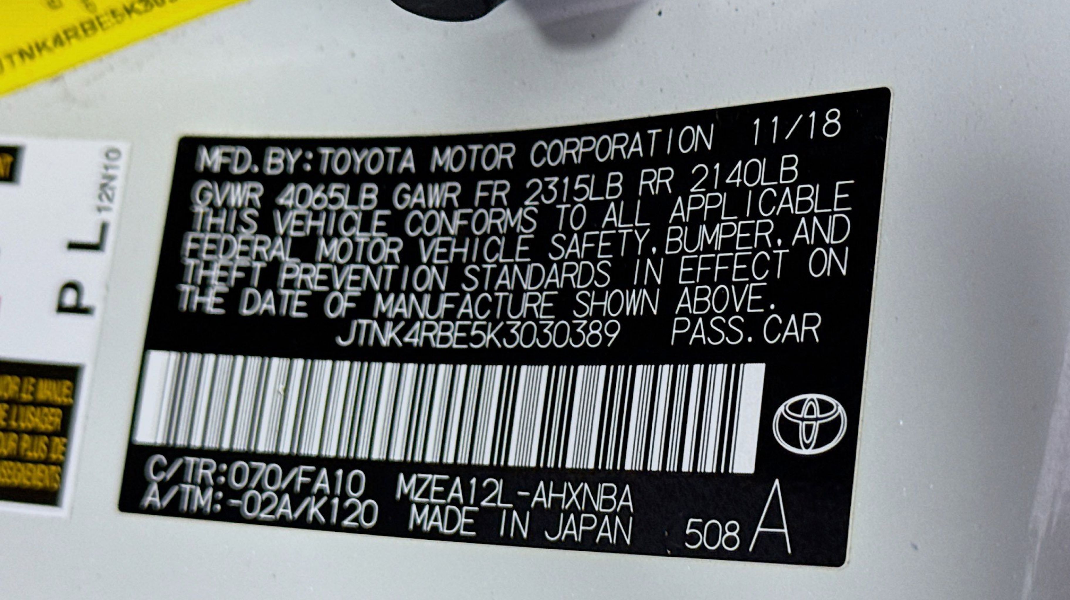 4-Wheel Disc Brakes, 6 Speakers, ABS brakes, Air Conditioning, Alloy wheels, AM/FM radio, Auto High-beam Headlights, Automatic temperature control, Blind Spot Monitoring, Brake assist, Bumpers: body-color, Compass, Delay-off headlights, Driver door bin, Driver vanity mirror, Dual front impact airbags, Dual front side impact airbags, Electronic Stability Control, Emergency communication system: Safety Connect, Exterior Parking Camera Rear, Fabric Upholstery, Four wheel independent suspension, Front anti-roll bar, Front Bucket Seats, Front Center Armrest, Front reading lights, Heated door mirrors, Illuminated entry, Knee airbag, Leather Shift Knob, Low tire pressure warning, Occupant sensing airbag, Outside temperature display, Overhead airbag, Overhead console, Panic alarm, Passenger door bin, Passenger vanity mirror, Power door mirrors, Power steering, Power windows, Radio data system, Radio: Entune 3.0 Audio, Rear anti-roll bar, Rear seat center armrest, Rear window defroster, Rear window wiper, Remote keyless entry, Satellite Radio, Security system, Speed control, Speed-sensing steering, Split folding rear seat, Spoiler, Sport Front Seats, Steering wheel mounted audio controls, Tachometer, Telescoping steering wheel, Tilt steering wheel, Traction control, Trip computer, Turn signal indicator mirrors, Variably intermittent wipers, Wheels: 16 Aluminum Silver Metallic Painted. Odometer is 48742 miles below market average!