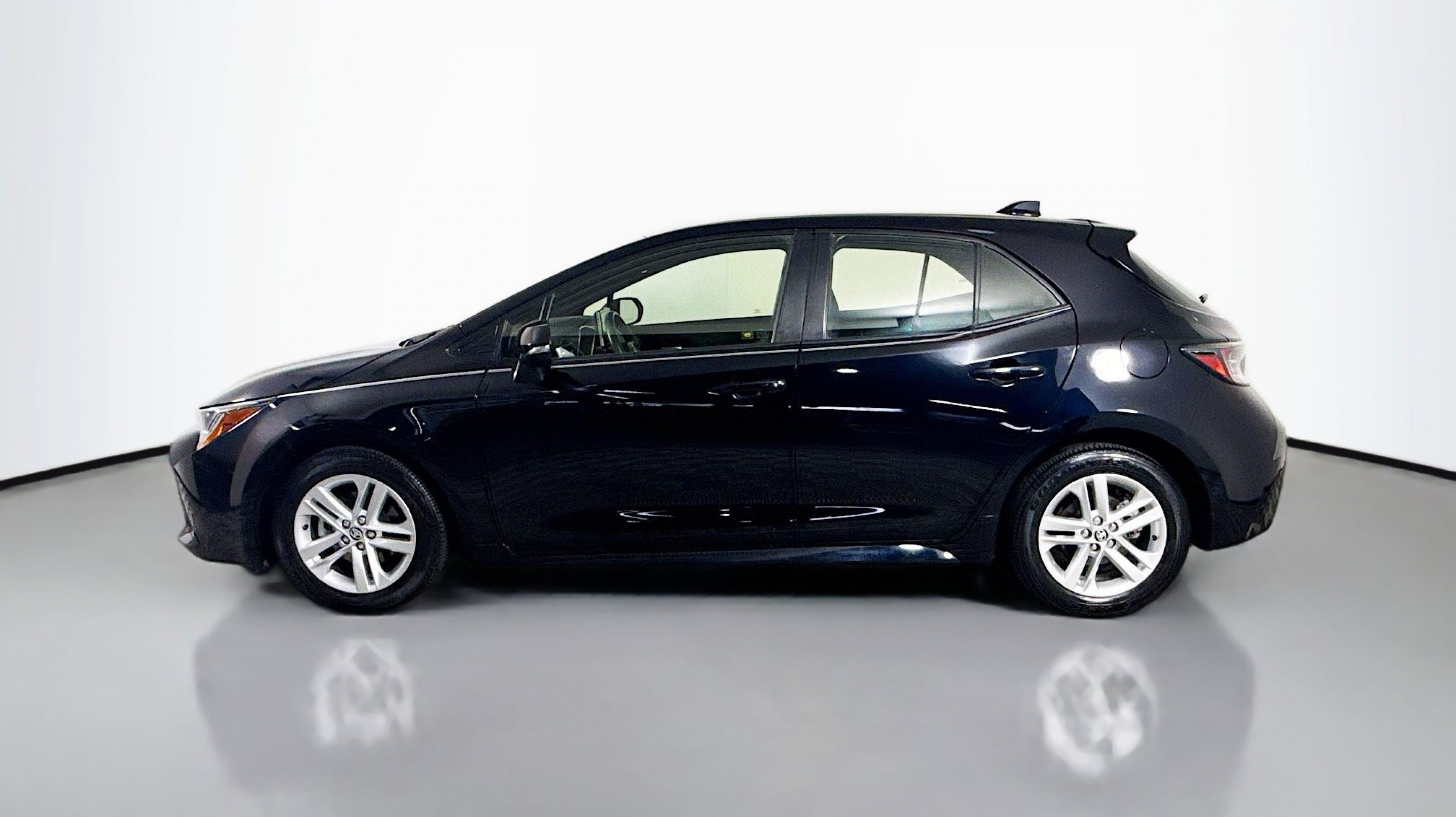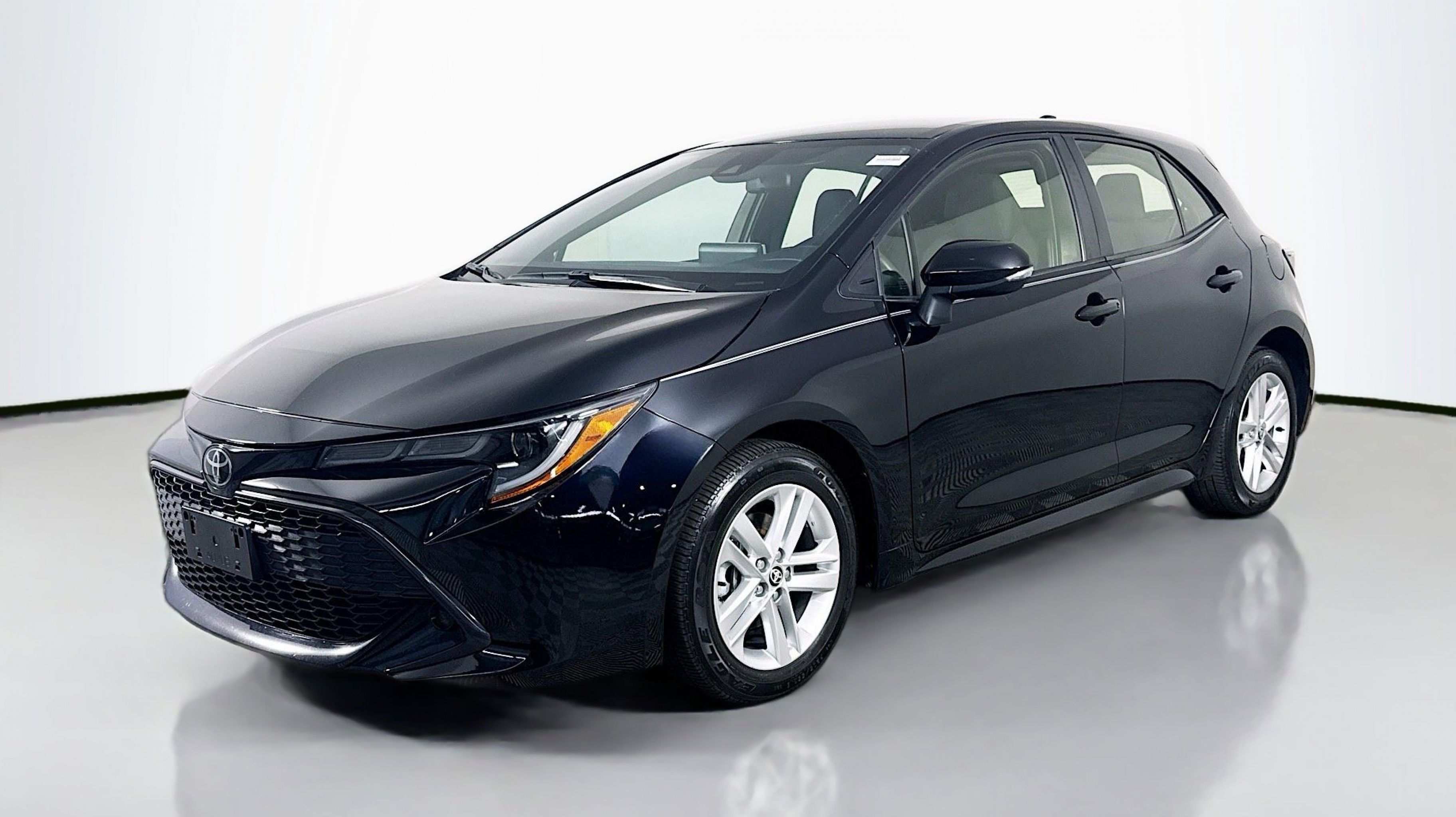 Midnight Black Metallic 2021 Toyota Corolla Hatchback SE FWD CVT 2.0L I4 All-Weather Floor Liner Package (TMS), All-Weather Floor Liners (TMS), 4-Wheel Disc Brakes, 6 Speakers, ABS brakes, Air Conditioning, Alloy wheels, AM/FM radio: SiriusXM, Apple CarPlay/Android Auto, Auto High-beam Headlights, Automatic temperature control, Blind Spot Monitor (BSM), Brake assist, Bumpers: body-color, Compass, Delay-off headlights, Driver door bin, Driver vanity mirror, Dual front impact airbags, Dual front side impact airbags, Electronic Stability Control, Emergency communication system: Safety Connect with 1-year trial, Exterior Parking Camera Rear, Fabric Upholstery, Four wheel independent suspension, Front anti-roll bar, Front Bucket Seats, Front Center Armrest, Front reading lights, Heated door mirrors, Illuminated entry, Knee airbag, Leather Shift Knob, Low tire pressure warning, Occupant sensing airbag, Outside temperature display, Overhead airbag, Overhead console, Panic alarm, Passenger door bin, Passenger vanity mirror, Power door mirrors, Power steering, Power windows, Preferred Owners Portfolio (TMS), Radio data system, Radio: Audio, Radio: Audio Plus, Rear anti-roll bar, Rear seat center armrest, Rear side impact airbag, Rear window defroster, Rear window wiper, Remote keyless entry, Security system, Speed control, Speed-sensing steering, Split folding rear seat, Spoiler, Sport Front Seats, Steering wheel mounted audio controls, Tachometer, Telescoping steering wheel, Tilt steering wheel, Traction control, Trip computer, Turn signal indicator mirrors, Variably intermittent wipers, Wheels: 16 Silver Metallic Painted Aluminum, All-Weather Floor Liner Package (TMS), All-Weather Floor Liners (TMS).