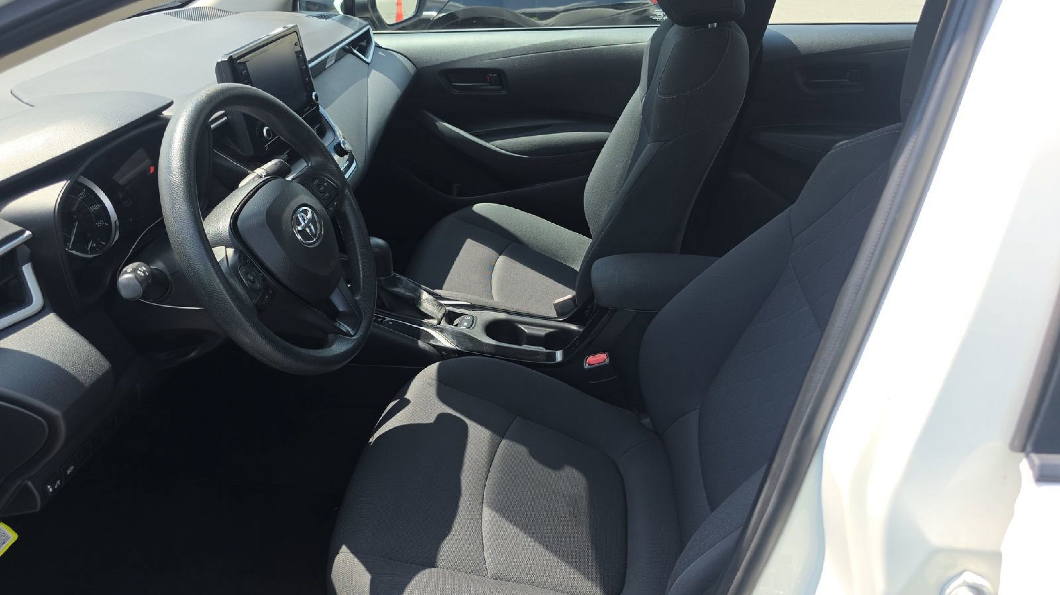White 2022 Toyota Corolla LE FWD CVT 1.8L I4 DOHC 16V 4-Wheel Disc Brakes, 6 Speakers, ABS brakes, Air Conditioning, AM/FM radio: SiriusXM, Apple CarPlay/Android Auto, Auto High-beam Headlights, Automatic temperature control, Brake assist, Bumpers: body-color, Delay-off headlights, Driver door bin, Driver vanity mirror, Dual front impact airbags, Dual front side impact airbags, Electronic Stability Control, Emergency communication system: Safety Connect with 1-year trial, Exterior Parking Camera Rear, Four wheel independent suspension, Front anti-roll bar, Front Bucket Seats, Front Center Armrest, Front reading lights, Fully automatic headlights, Illuminated entry, Knee airbag, Low tire pressure warning, Occupant sensing airbag, Outside temperature display, Overhead airbag, Panic alarm, Passenger door bin, Passenger vanity mirror, Power door mirrors, Power steering, Power windows, Premium Fabric Seat Trim, Radio data system, Radio: Audio, Rear anti-roll bar, Rear seat center armrest, Rear side impact airbag, Rear window defroster, Remote keyless entry, Security system, Speed control, Split folding rear seat, Steering wheel mounted audio controls, Tachometer, Telescoping steering wheel, Tilt steering wheel, Traction control, Trip computer, Variably intermittent wipers, Wheels: 16 Wide Vent Steel.