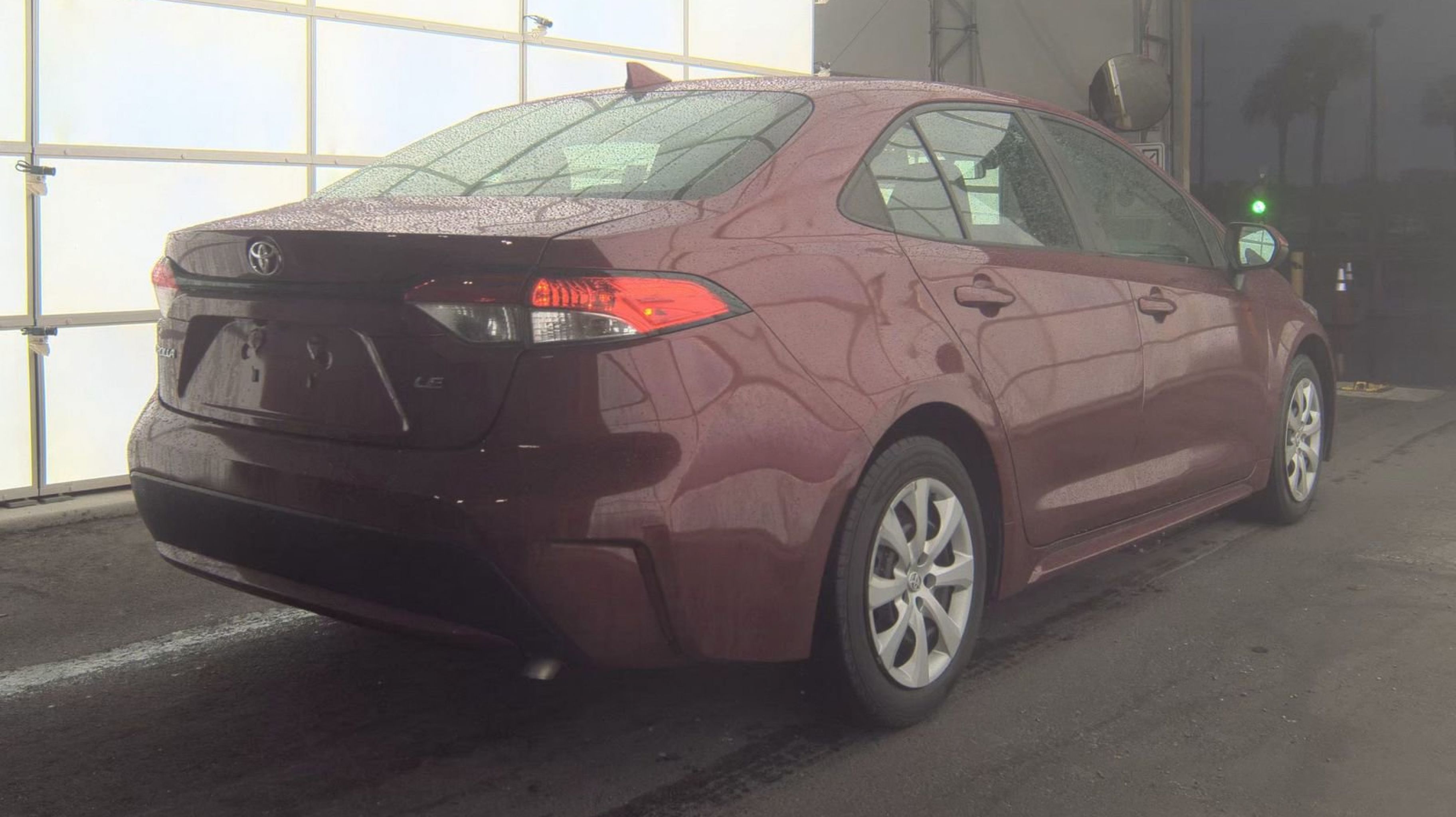 Ruby Flare Pearl 2022 Toyota Corolla LE FWD CVT 1.8L I4 DOHC 16V 4-Wheel Disc Brakes, 6 Speakers, ABS brakes, Air Conditioning, AM/FM radio: SiriusXM, Apple CarPlay/Android Auto, Auto High-beam Headlights, Automatic temperature control, Brake assist, Bumpers: body-color, Delay-off headlights, Driver door bin, Driver vanity mirror, Dual front impact airbags, Dual front side impact airbags, Electronic Stability Control, Emergency communication system: Safety Connect with 1-year trial, Exterior Parking Camera Rear, Four wheel independent suspension, Front anti-roll bar, Front Bucket Seats, Front Center Armrest, Front reading lights, Fully automatic headlights, Illuminated entry, Knee airbag, Low tire pressure warning, Occupant sensing airbag, Outside temperature display, Overhead airbag, Panic alarm, Passenger door bin, Passenger vanity mirror, Power door mirrors, Power steering, Power windows, Premium Fabric Seat Trim, Radio data system, Radio: Audio, Rear anti-roll bar, Rear seat center armrest, Rear side impact airbag, Rear window defroster, Remote keyless entry, Security system, Speed control, Split folding rear seat, Steering wheel mounted audio controls, Tachometer, Telescoping steering wheel, Tilt steering wheel, Traction control, Trip computer, Variably intermittent wipers, Wheels: 16 Wide Vent Steel.