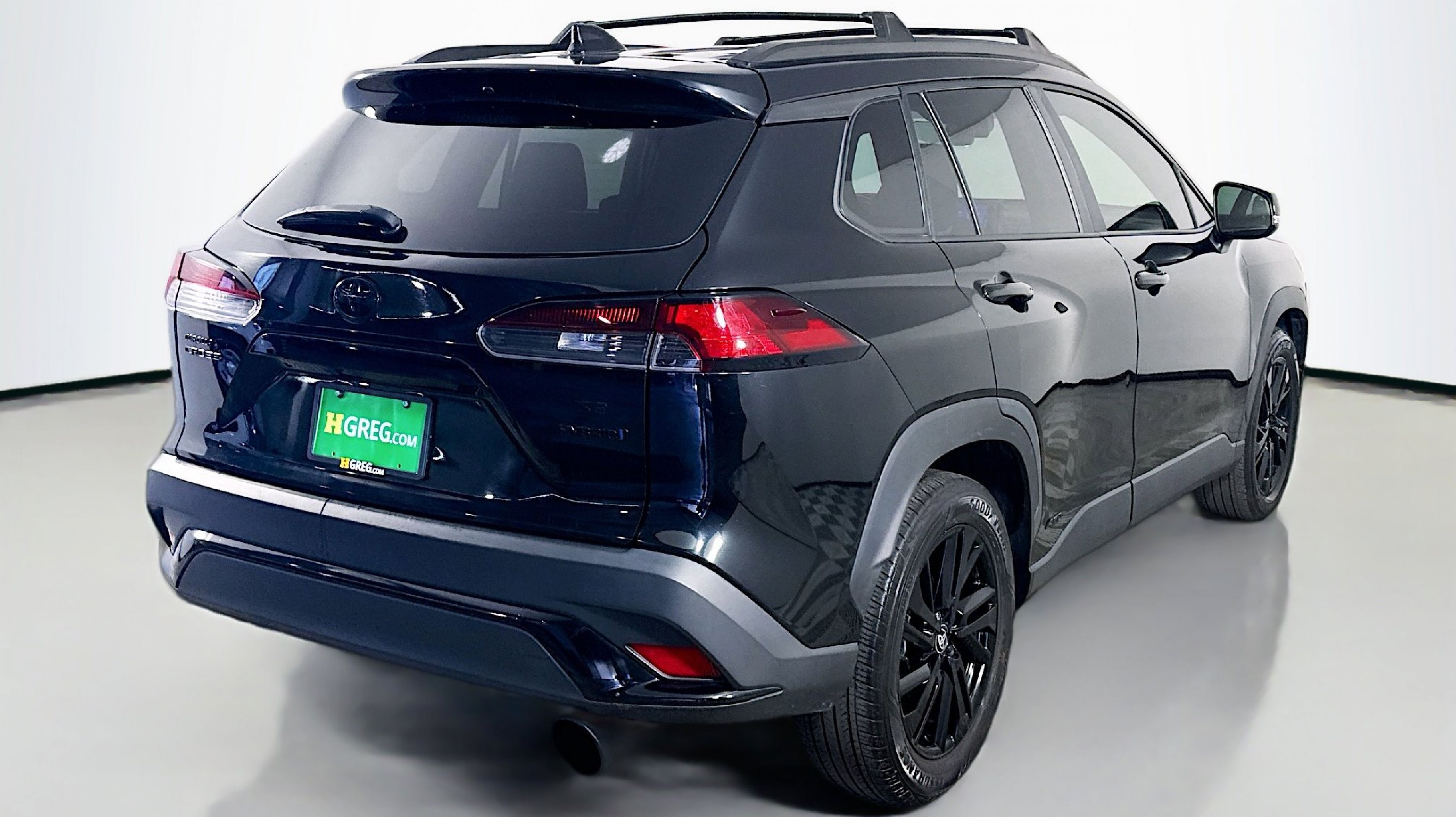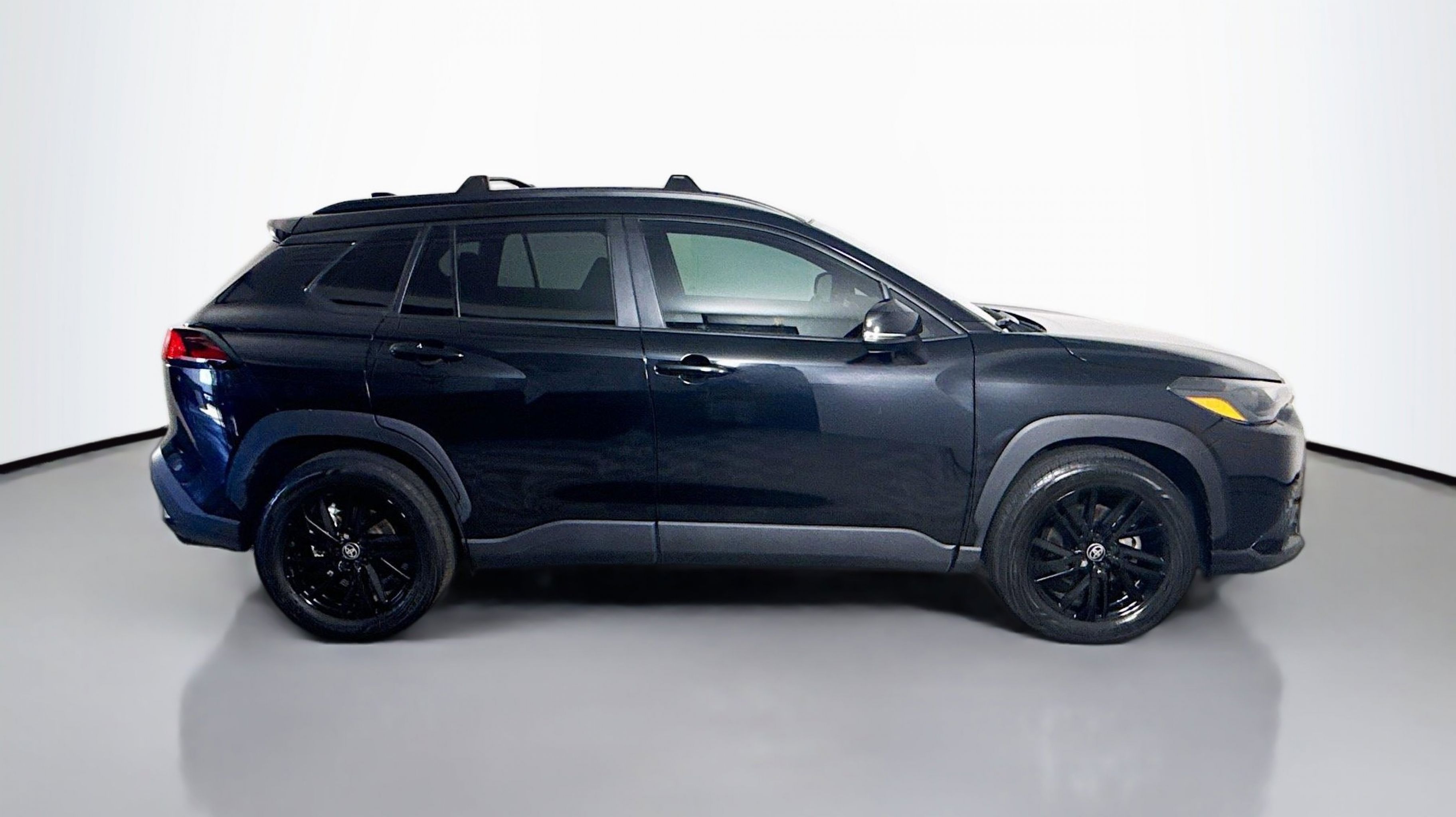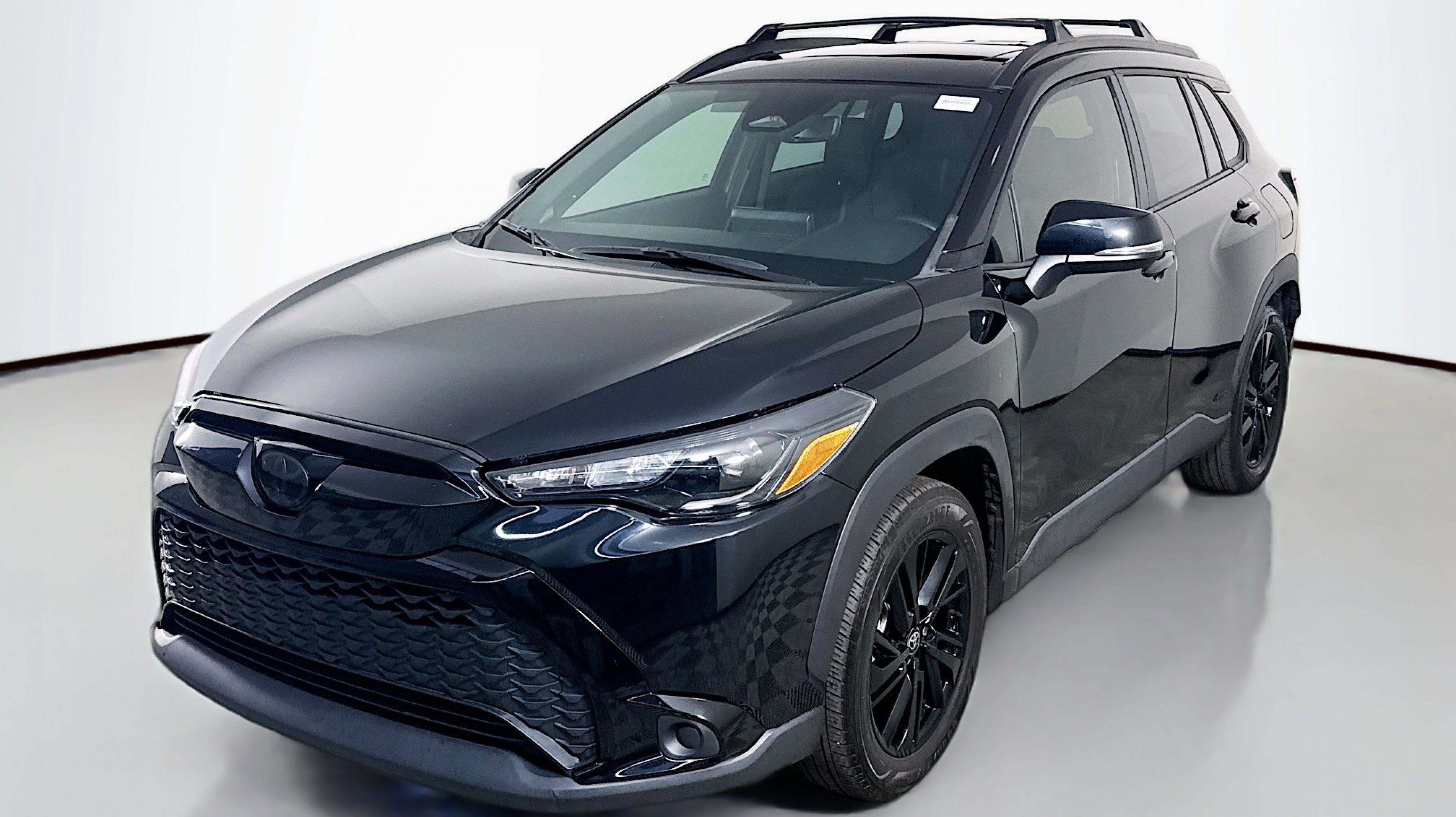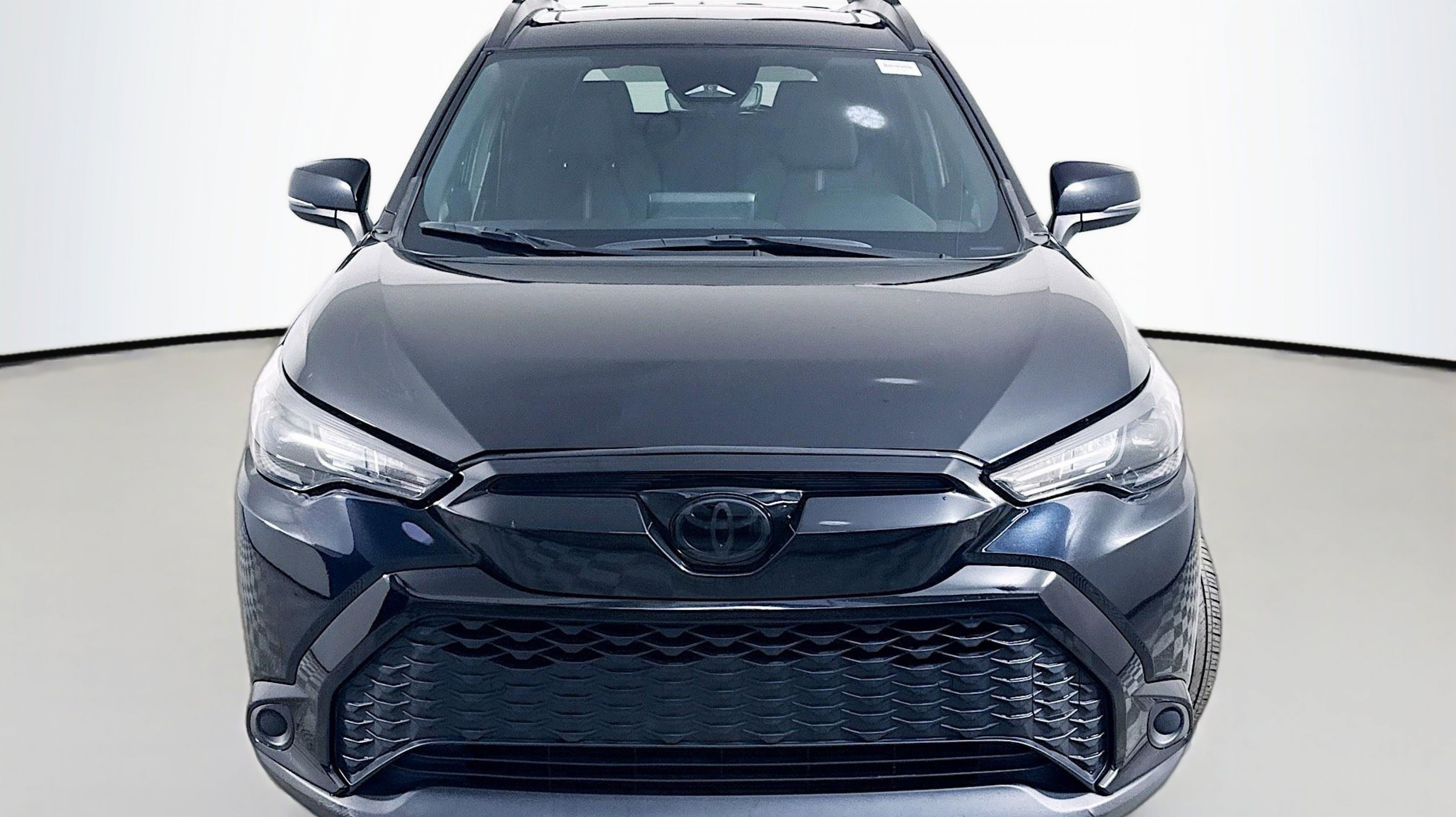 Jet Black 2024 Toyota Corolla Cross Hybrid Nightshade AWD eCVT 2.0L I4 PDI Hybrid DOHC 16V LEV3-SULEV30 150hp 2.0L I4 PDI Hybrid DOHC 16V LEV3-SULEV30 150hp, Moonroof Package, Nightshade, Tilt & Slide Sunroof & Moonroof, Tonneau Cover & Try Trim, 4-Wheel Disc Brakes, 6 Speakers, ABS brakes, Air Conditioning, Alloy wheels, AM/FM radio: SiriusXM, Auto High-beam Headlights, Automatic temperature control, Brake assist, Bumpers: body-color, Delay-off headlights, Driver door bin, Driver vanity mirror, Dual front impact airbags, Dual front side impact airbags, Electronic Stability Control, Emergency communication system: Safety Connect (up to 10-year trial subscription), Exterior Parking Camera Rear, Fabric Seat Trim, Four wheel independent suspension, Frameless HomeLink Mirror (TMS), Front anti-roll bar, Front Bucket Seats, Front Center Armrest, Front reading lights, Fully automatic headlights, Heated door mirrors, Illuminated entry, Knee airbag, Leather steering wheel, Low tire pressure warning, Occupant sensing airbag, Outside temperature display, Overhead airbag, Panic alarm, Passenger door bin, Passenger vanity mirror, Power door mirrors, Power steering, Power windows, Radio data system, Radio: 8 Touch-Screen Display Audio, Radio: JBL Premium Audio w/8 Touchscreen, Rear anti-roll bar, Rear side impact airbag, Rear window defroster, Rear window wiper, Remote keyless entry, Speed control, Split folding rear seat, Spoiler, Steering wheel mounted audio controls, Tachometer, TBD Axle Ratio, Telescoping steering wheel, Tilt steering wheel, Traction control, Trip computer, Turn signal indicator mirrors, Variably intermittent wipers, Wheels: 18 All Black-Painted Machined Alloy, 2.0L I4 PDI Hybrid DOHC 16V LEV3-SULEV30 150hp, Moonroof Package, Nightshade, Tilt & Slide Sunroof & Moonroof, Tonneau Cover & Try Trim.