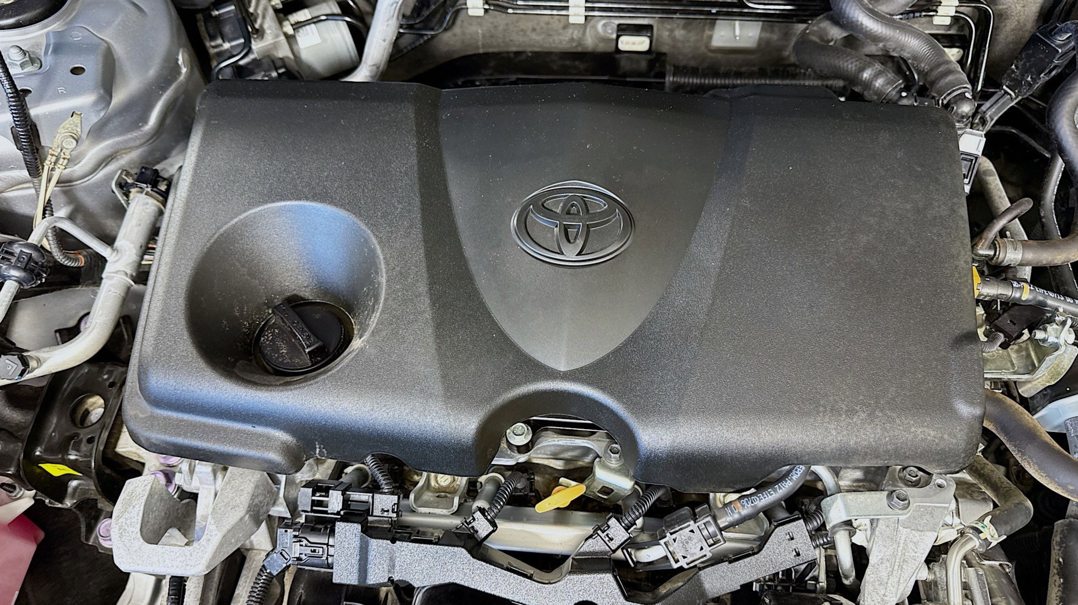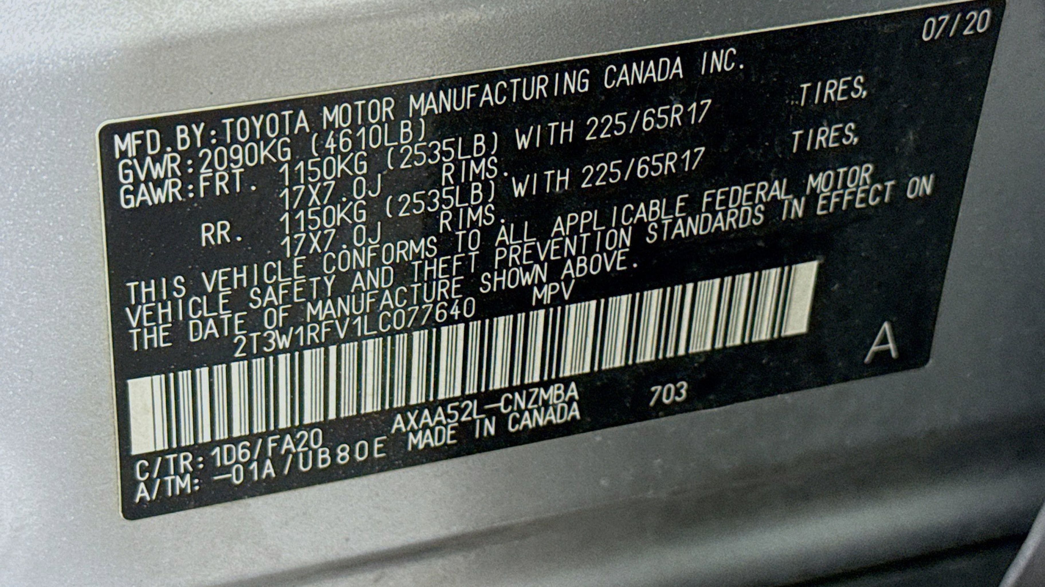 Black w/Fabric Seat Trim, 4-Wheel Disc Brakes, 6 Speakers, ABS brakes, Air Conditioning, Alloy wheels, AM/FM radio: SiriusXM, AM/FM Stereo, Apple CarPlay/Android Auto, Auto High-beam Headlights, Automatic temperature control, Axle Ratio: 3.177, Brake assist, Bumpers: body-color, Delay-off headlights, Driver door bin, Driver vanity mirror, Dual front impact airbags, Dual front side impact airbags, Electronic Stability Control, Emergency communication system: Entune Safety Connect, Exterior Parking Camera Rear, Fabric Seat Trim, Four wheel independent suspension, Front anti-roll bar, Front Bucket Seats, Front Center Armrest, Front dual zone A/C, Front fog lights, Front reading lights, Fully automatic headlights, Heated door mirrors, Illuminated entry, Knee airbag, Low tire pressure warning, Occupant sensing airbag, Outside temperature display, Overhead airbag, Overhead console, Panic alarm, Passenger door bin, Passenger vanity mirror, Power door mirrors, Power driver seat, Power steering, Power windows, Radio data system, Rear anti-roll bar, Rear seat center armrest, Rear window defroster, Rear window wiper, Remote keyless entry, Roof rack: rails only, Speed control, Speed-sensing steering, Split folding rear seat, Spoiler, Steering wheel mounted audio controls, Tachometer, Telescoping steering wheel, Tilt steering wheel, Traction control, Trip computer, Turn signal indicator mirrors, Variably intermittent wipers, Wheels: 17 5-Spoke Silver Alloy, Black w/Fabric Seat Trim.