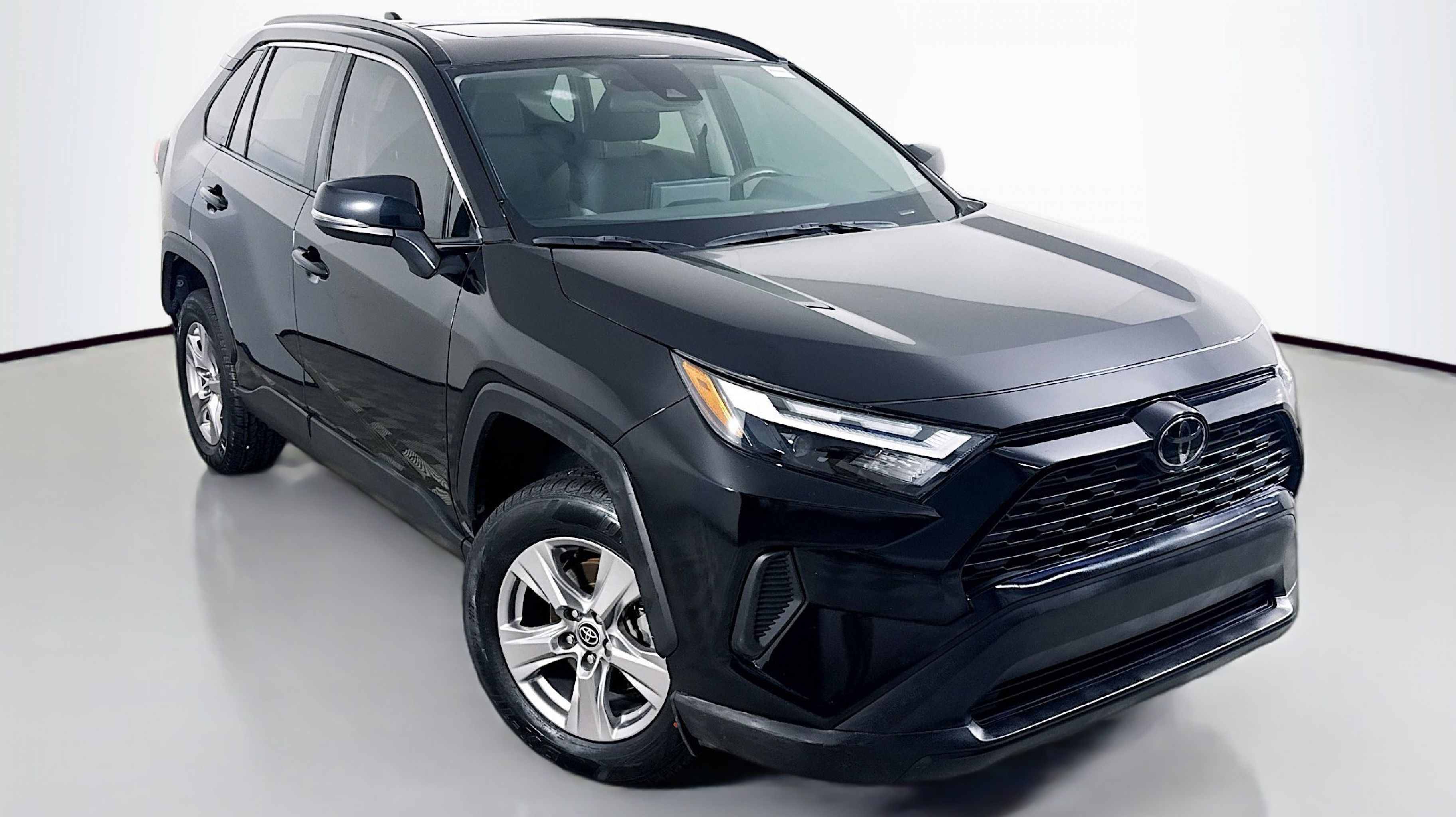 Midnight Black Metallic 2022 Toyota RAV4 XLE FWD 8-Speed Automatic 2.5L 4-Cylinder DOHC Dual VVT-i Ash w/Fabric Seat Trim, Convenience Package, Front Door Smart Key System w/Push Button Start, Tilt & Slide Moon Roof, 4-Wheel Disc Brakes, 6 Speakers, ABS brakes, Air Conditioning, Alloy wheels, AM/FM radio: SiriusXM, AM/FM Stereo, Apple CarPlay/Android Auto, Auto High-beam Headlights, Automatic temperature control, Axle Ratio: 3.177, Brake assist, Bumpers: body-color, Delay-off headlights, Driver door bin, Driver vanity mirror, Dual front impact airbags, Dual front side impact airbags, Electronic Stability Control, Emergency communication system: Safety Connect with 1-year trial, Exterior Parking Camera Rear, Fabric Seat Trim, Four wheel independent suspension, Front anti-roll bar, Front Bucket Seats, Front Center Armrest, Front dual zone A/C, Front reading lights, Fully automatic headlights, Heated door mirrors, Illuminated entry, Knee airbag, Low tire pressure warning, Occupant sensing airbag, Outside temperature display, Overhead airbag, Overhead console, Panic alarm, Passenger door bin, Passenger vanity mirror, Power door mirrors, Power driver seat, Power steering, Power windows, Radio data system, Rear anti-roll bar, Rear seat center armrest, Rear window defroster, Rear window wiper, Remote keyless entry, Roof rack: rails only, Speed control, Speed-sensing steering, Split folding rear seat, Spoiler, Steering wheel mounted audio controls, Tachometer, Telescoping steering wheel, Tilt steering wheel, Traction control, Trip computer, Turn signal indicator mirrors, Variably intermittent wipers, Wheels: 17 5-Spoke Silver Alloy, Ash w/Fabric Seat Trim, Convenience Package, Front Door Smart Key System w/Push Button Start, Tilt & Slide Moon Roof.