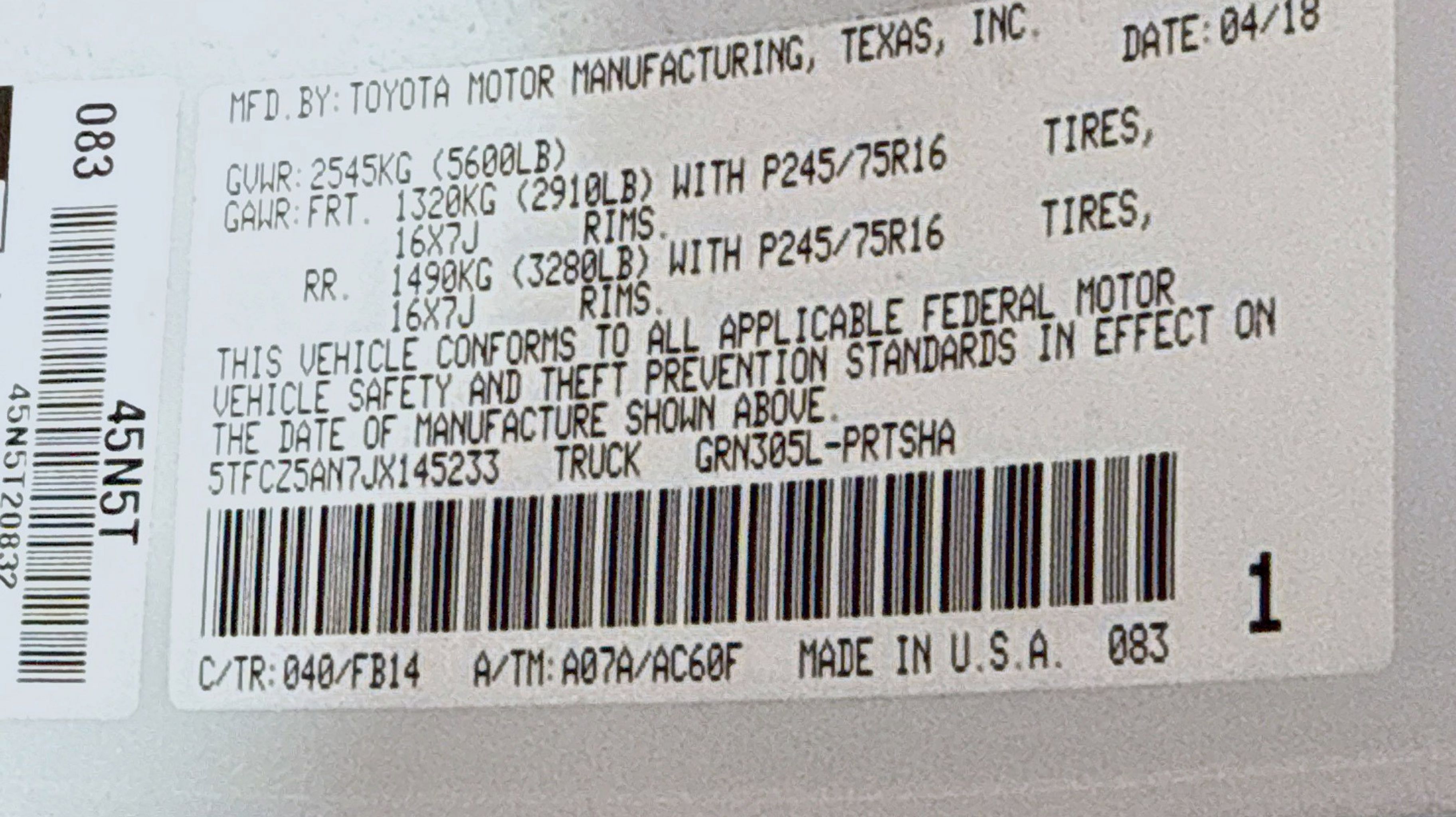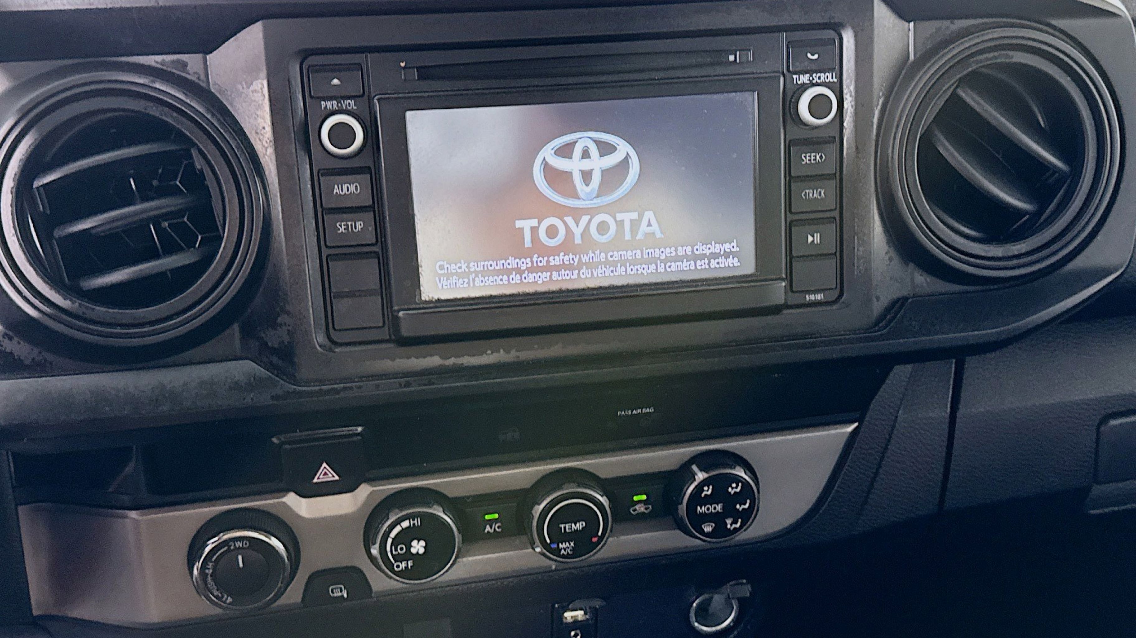 CARFAX One-Owner. 4WD, Carpet Floor Mats & Door Sill Protectors Package, Door Sill Protectors, 16 x 7J+30 Style Steel Disc Wheels, 6 Speakers, ABS brakes, Air Conditioning, AM/FM radio, Anti-whiplash front head restraints, Auto High-beam Headlights, Axle Ratio: 3.91, Bed Mat, Brake assist, Bumpers: body-color, CD player, Driver door bin, Dual front impact airbags, Dual front side impact airbags, Electronic Stability Control, Exterior Parking Camera Rear, Fabric Seat Trim (FB), Front anti-roll bar, Front Bucket Seats, Front Center Armrest, Front reading lights, Front wheel independent suspension, Illuminated entry, Knee airbag, Low tire pressure warning, Occupant sensing airbag, Outside temperature display, Overhead airbag, Overhead console, Passenger door bin, Power door mirrors, Power steering, Power windows, Radio: Entune AM/FM/CD, Rear step bumper, Speed control, Speed-sensing steering, Split folding rear seat, Steering wheel mounted audio controls, Tachometer, Telescoping steering wheel, Tilt steering wheel, Traction control, 4WD, Carpet Floor Mats & Door Sill Protectors Package, Door Sill Protectors. Odometer is 83770 miles below market average!