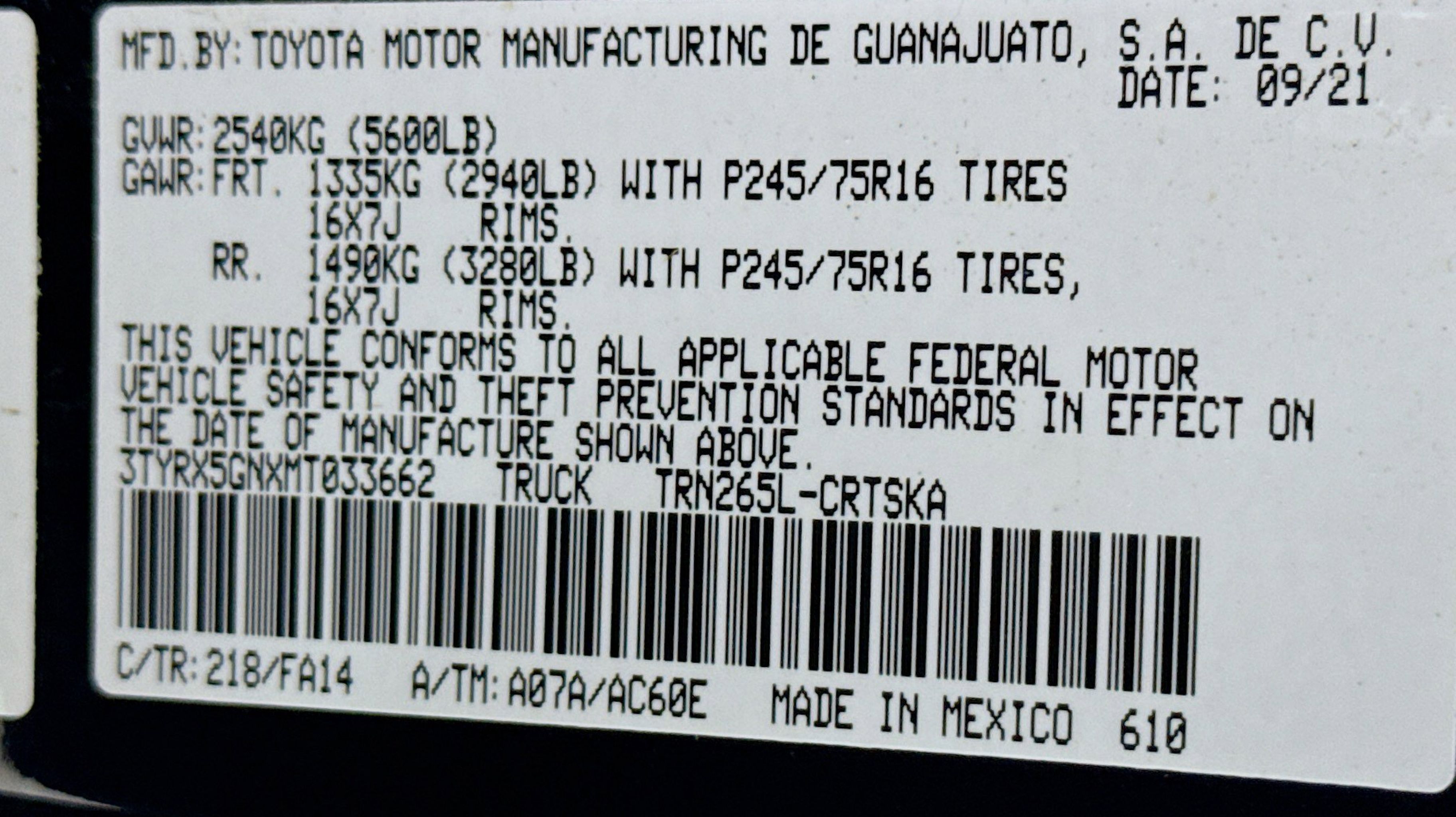 CARFAX One-Owner. Clean CARFAX. Black Rear Bumper, Fabric Seat Trim (FA), Intermittent Wiper Delete, Radio: AM/FM Audio System, Rear Cupholder Delete, Rear Headrests Delete, Rear Seat Belts Delete, Utility Package, 6 Speakers, ABS brakes, Air Conditioning, All Weather Floor Liner & Door Sill Protector (TMS), AM/FM radio: SiriusXM, AM/FM Stereo, Anti-whiplash front head restraints, Apple CarPlay/Android Auto, Auto High-beam Headlights, Axle Ratio: 4.30, Brake assist, Bumpers: body-color, Daytime Running Lamps, Driver door bin, Dual front impact airbags, Dual front side impact airbags, Electronic Stability Control, Emergency communication system: Safety Connect with 1-year trial, Exterior Parking Camera Rear, Fabric Seat Trim (FB), Front anti-roll bar, Front Bucket Seats, Front Center Armrest, Front reading lights, Front Seats, Front wheel independent suspension, Illuminated entry, Knee airbag, Low tire pressure warning, Occupant sensing airbag, Outside temperature display, Overhead airbag, Overhead console, Passenger cancellable airbag, Passenger door bin, Power door mirrors, Power steering, Power windows, Preferred Owners Portfolio (TMS), Rear step bumper, Speed control, Speed-sensing steering, Steering wheel mounted audio controls, Tachometer, Telescoping steering wheel, Tilt steering wheel, Traction control, Variably intermittent wipers, Wheels: 16 x 7J Style Steel Disc, Black Rear Bumper, Fabric Seat Trim (FA), Intermittent Wiper Delete, Radio: AM/FM Audio System, Rear Cupholder Delete, Rear Headrests Delete, Rear Seat Belts Delete, Utility Package. Odometer is 30179 miles below market average!