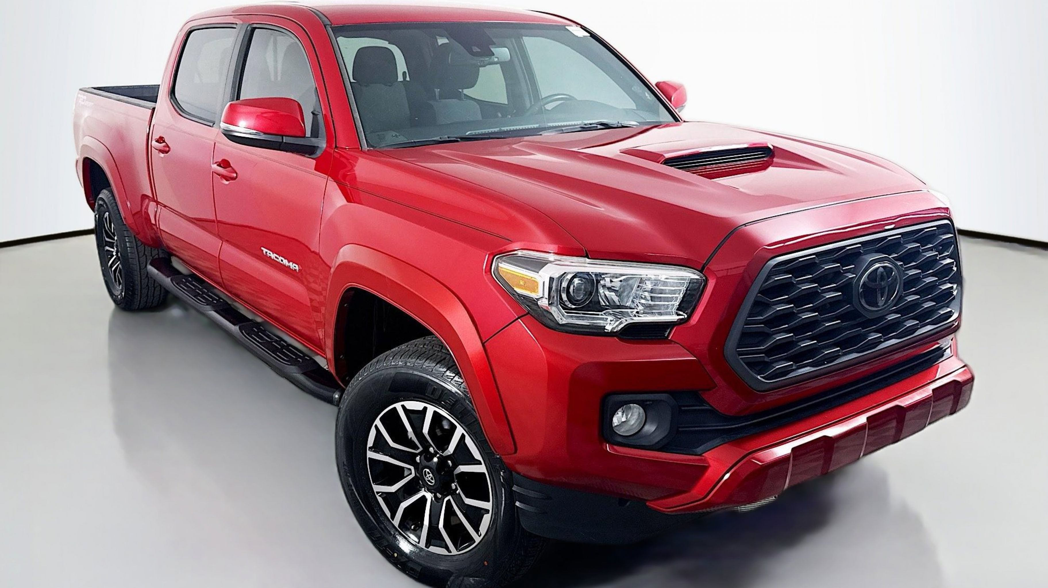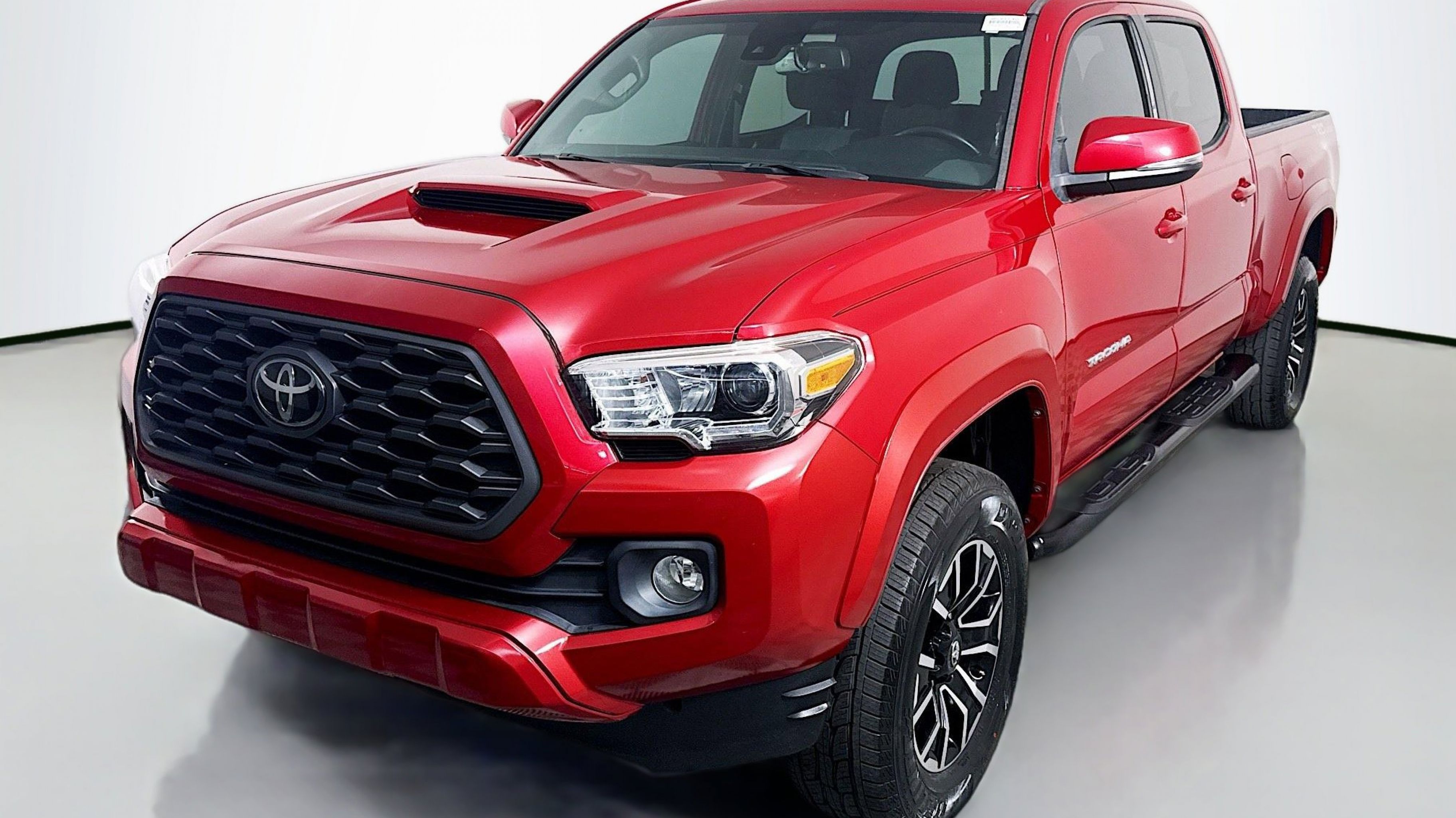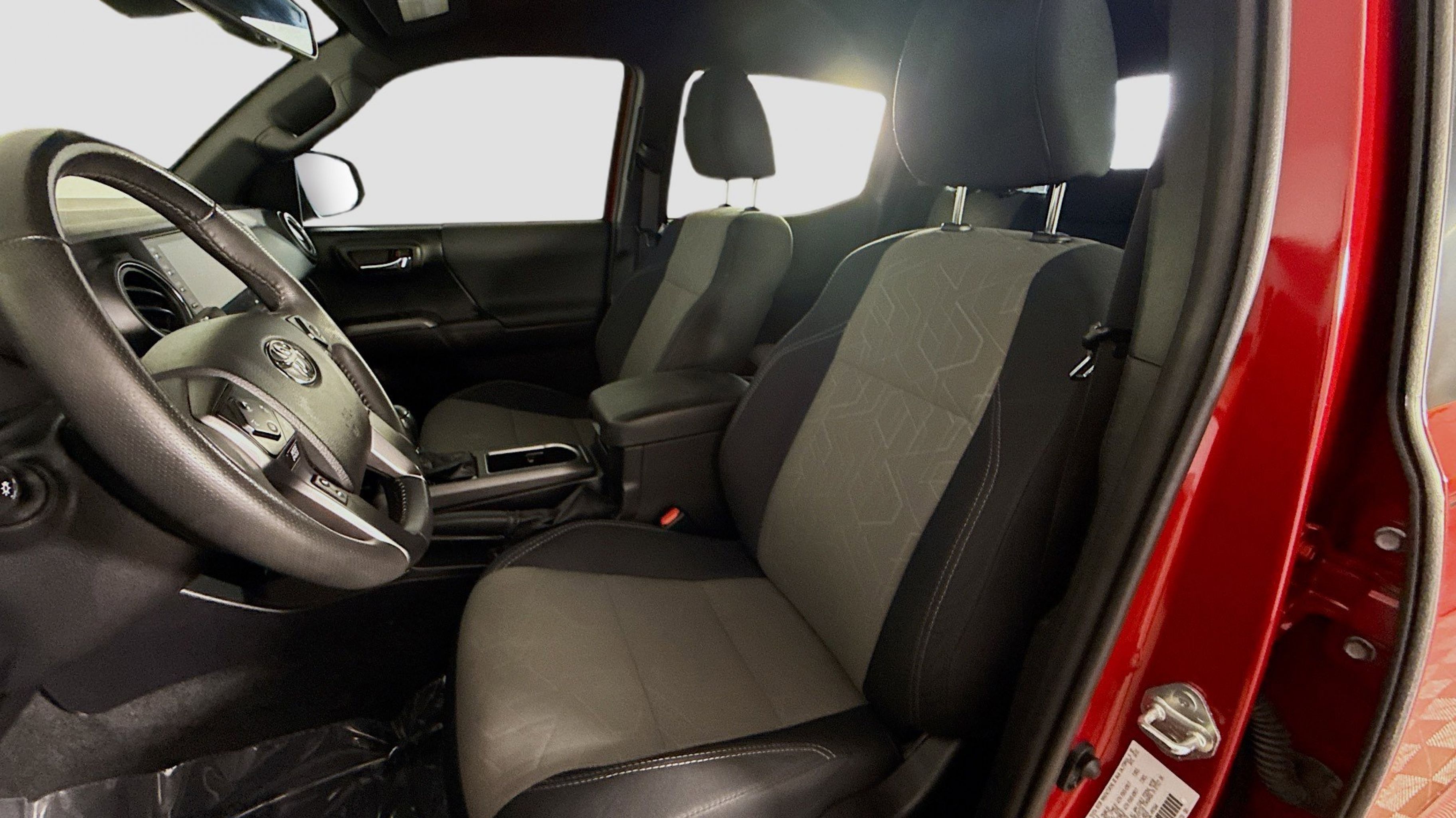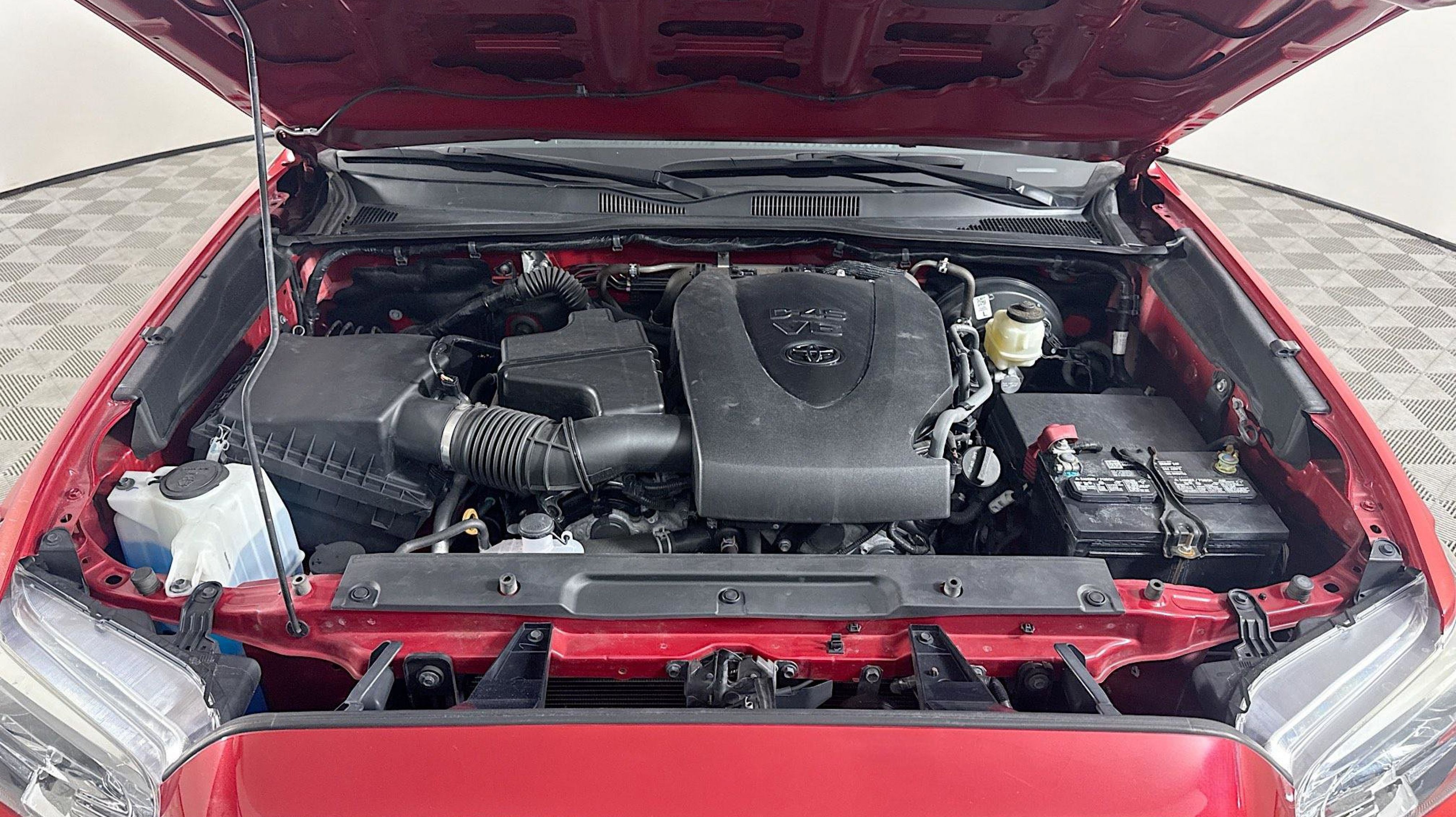 Barcelona Red Metallic 2022 Toyota Tacoma SR5 V6 RWD 6-Speed Automatic 3.5L V6 PDI DOHC 24V LEV3-ULEV70 278hp Blind Spot Monitor w/Rear Cross Traffic Alert, Color-Keyed Rear Bumper, Technology Package, 6 Speakers, ABS brakes, Air Conditioning, Alloy wheels, AM/FM radio: SiriusXM, Anti-whiplash front head restraints, Apple CarPlay/Android Auto, Auto High-beam Headlights, Auto-dimming Rear-View mirror, Automatic temperature control, Axle Ratio: 3.91, Brake assist, Bumpers: body-color, Driver door bin, Dual front impact airbags, Dual front side impact airbags, Electronic Stability Control, Emergency communication system: Safety Connect with 1-year trial, Exterior Parking Camera Rear, Fabric Seat Trim (FC), Front anti-roll bar, Front Bucket Seats, Front Center Armrest, Front dual zone A/C, Front fog lights, Front reading lights, Front Seats, Front wheel independent suspension, Illuminated entry, Knee airbag, Low tire pressure warning, Occupant sensing airbag, Outside temperature display, Overhead airbag, Overhead console, Panic alarm, Passenger door bin, Power door mirrors, Power driver seat, Power steering, Power windows, Radio: AM/FM/HD Radio, Rear Parking Assist Sonar, Rear step bumper, Remote keyless entry, Speed control, Speed-sensing steering, Split folding rear seat, Steering wheel mounted audio controls, Tachometer, Telescoping steering wheel, Tilt steering wheel, Traction control, Trip computer, Variably intermittent wipers, Wheels: 16 x 7J Silver Alloy, Blind Spot Monitor w/Rear Cross Traffic Alert, Color-Keyed Rear Bumper, Technology Package.