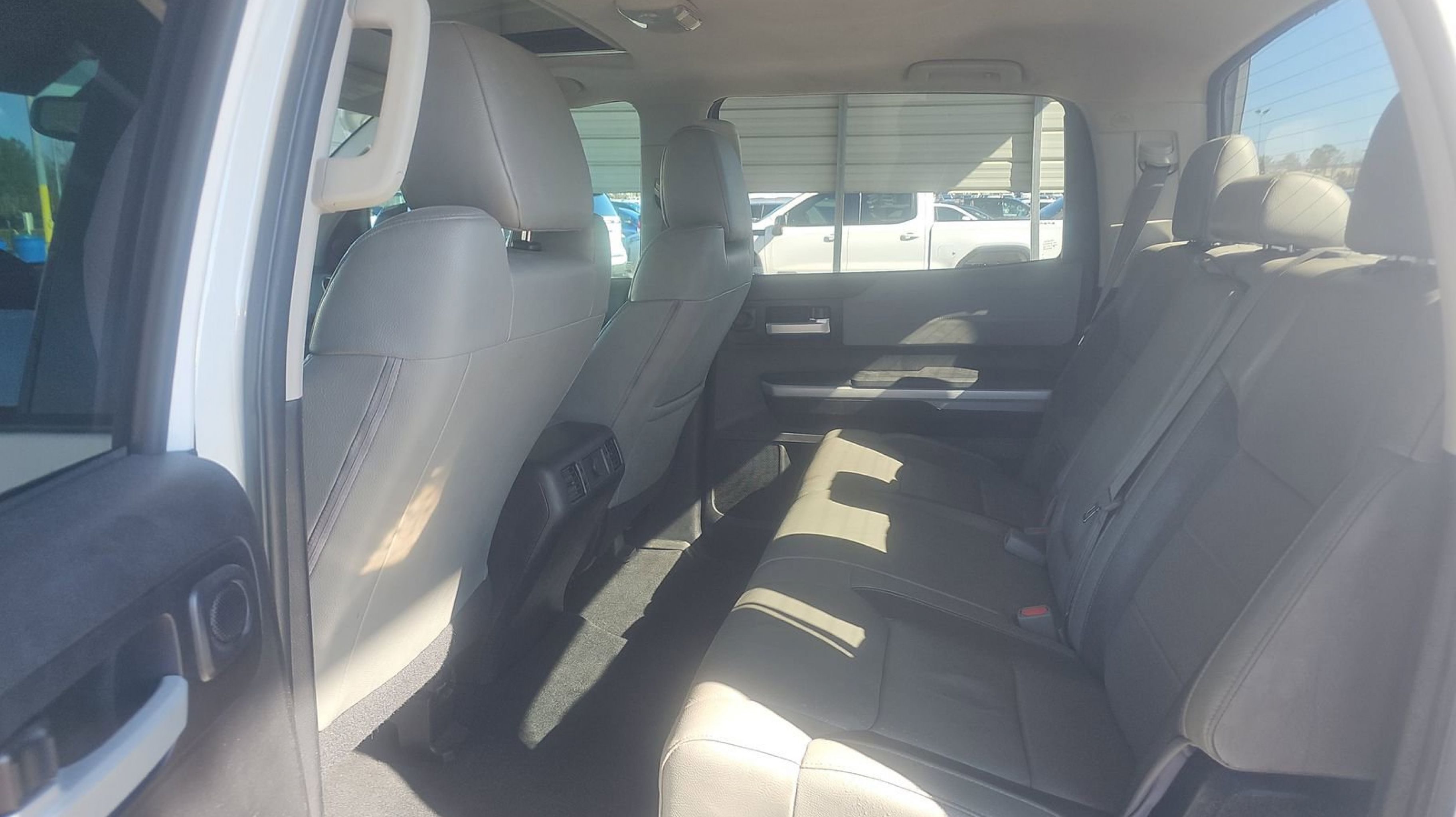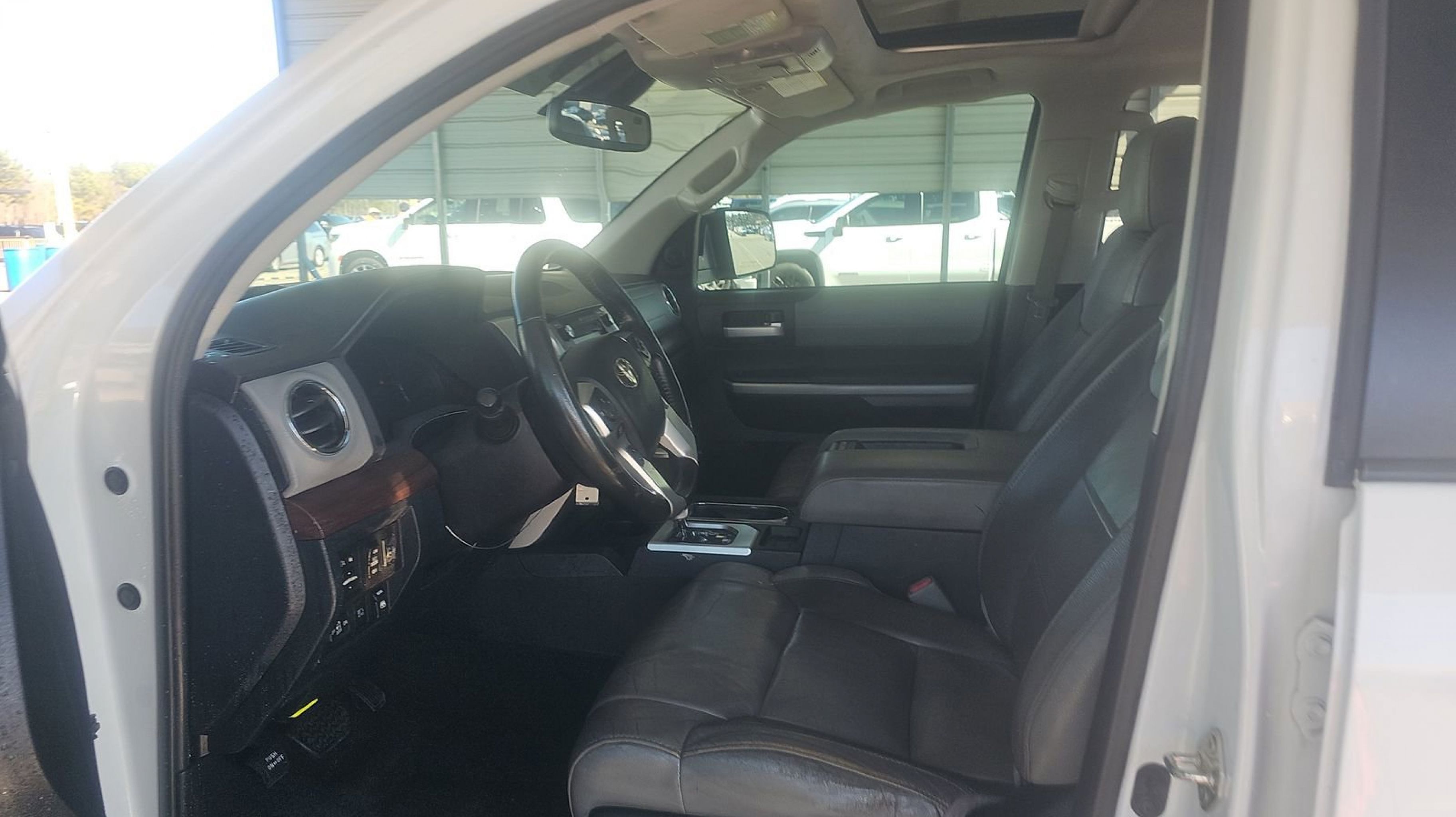 Super White 2018 Toyota Tundra Limited RWD 6-Speed Automatic Electronic with Overdrive i-Force 5.7L V8 DOHC 32V LEV Graphite w/Leather Seat Trim (LB) or Leather Seat Trim w/TRD Off Road Package, Anti-Theft Immobilizer w/Alarm, Blind Spot Monitoring Lane Change Assist, Entune App Suite, Front & Rear Clearance Backup Sonar, Illuminated Entry System, Limited Premium Package, Power Door Locks, Power Windows w/Front Auto Up/Down, Radio: Entune Premium w/JBL Audio & Navigation, SIRIUSXM Satellite Radio, 20 x 8J Split 5-Spoke Alloy Disc Wheels, 4-Wheel Disc Brakes, 4.30 Axle Ratio, 9 Speakers, ABS brakes, Air Conditioning, Alloy wheels, AM/FM radio: SiriusXM, Auto High-beam Headlights, Auto-dimming Rear-View mirror, Automatic temperature control, Brake assist, CD player, Compass, Delay-off headlights, Driver door bin, Driver vanity mirror, Dual front impact airbags, Dual front side impact airbags, Electronic Stability Control, Exterior Parking Camera Rear, Front anti-roll bar, Front Bucket Seats, Front Center Armrest, Front dual zone A/C, Front fog lights, Front reading lights, Front wheel independent suspension, Fully automatic headlights, Garage door transmitter: HomeLink, Heated door mirrors, Heated Front Bucket Seats, Heated front seats, Illuminated entry, Knee airbag, Leather Seat Trim, Low tire pressure warning, Navigation System, Occupant sensing airbag, Outside temperature display, Overhead airbag, Overhead console, Panic alarm, Passenger door bin, Passenger vanity mirror, Power door mirrors, Power driver seat, Power passenger seat, Power steering, Power Tilt & Slide Moonroof w/Sliding Sunshade, Power windows, Radio data system, Radio: Entune AM/FM/HD w/CD Player, Rear reading lights, Rear seat center armrest, Rear step bumper, Rear window defroster, Remote keyless entry, Security system, Speed control, Speed-sensing steering, Split folding rear seat, Steering wheel mounted audio controls, Tachometer, Telescoping steering wheel, Tilt steering wheel, Traction control, Trip computer, Variably intermittent wipers, Voltmeter, Graphite w/Leather Seat Trim (LB) or Leather Seat Trim w/TRD Off Road Package, Anti-Theft Immobilizer w/Alarm, Blind Spot Monitoring Lane Change Assist, Entune App Suite, Front & Rear Clearance Backup Sonar, Illuminated Entry System, Limited Premium Package, Power Door Locks, Power Windows w/Front Auto Up/Down, Radio: Entune Premium w/JBL Audio & Navigation, SIRIUSXM Satellite Radio.