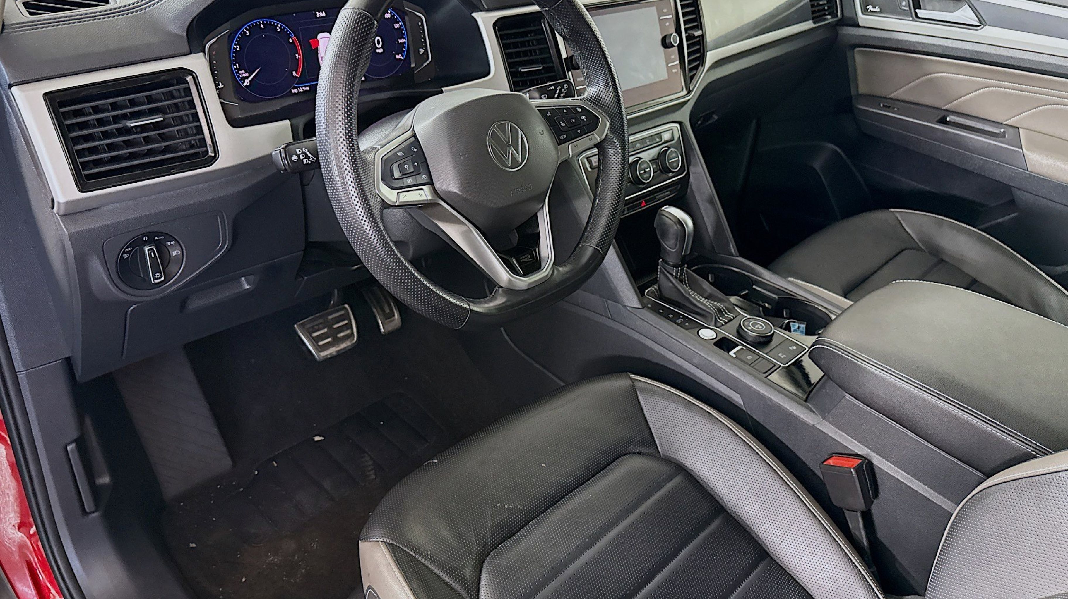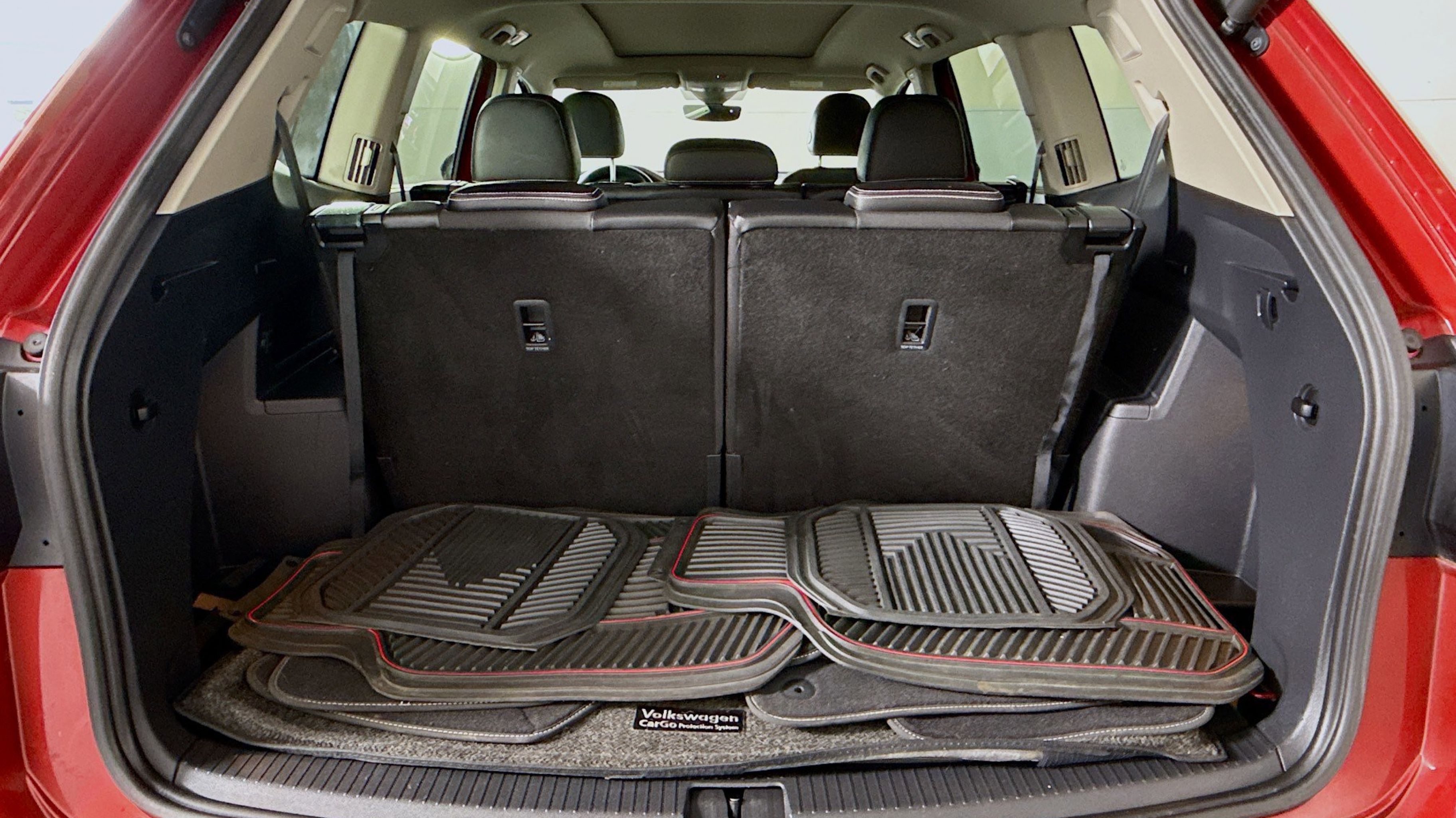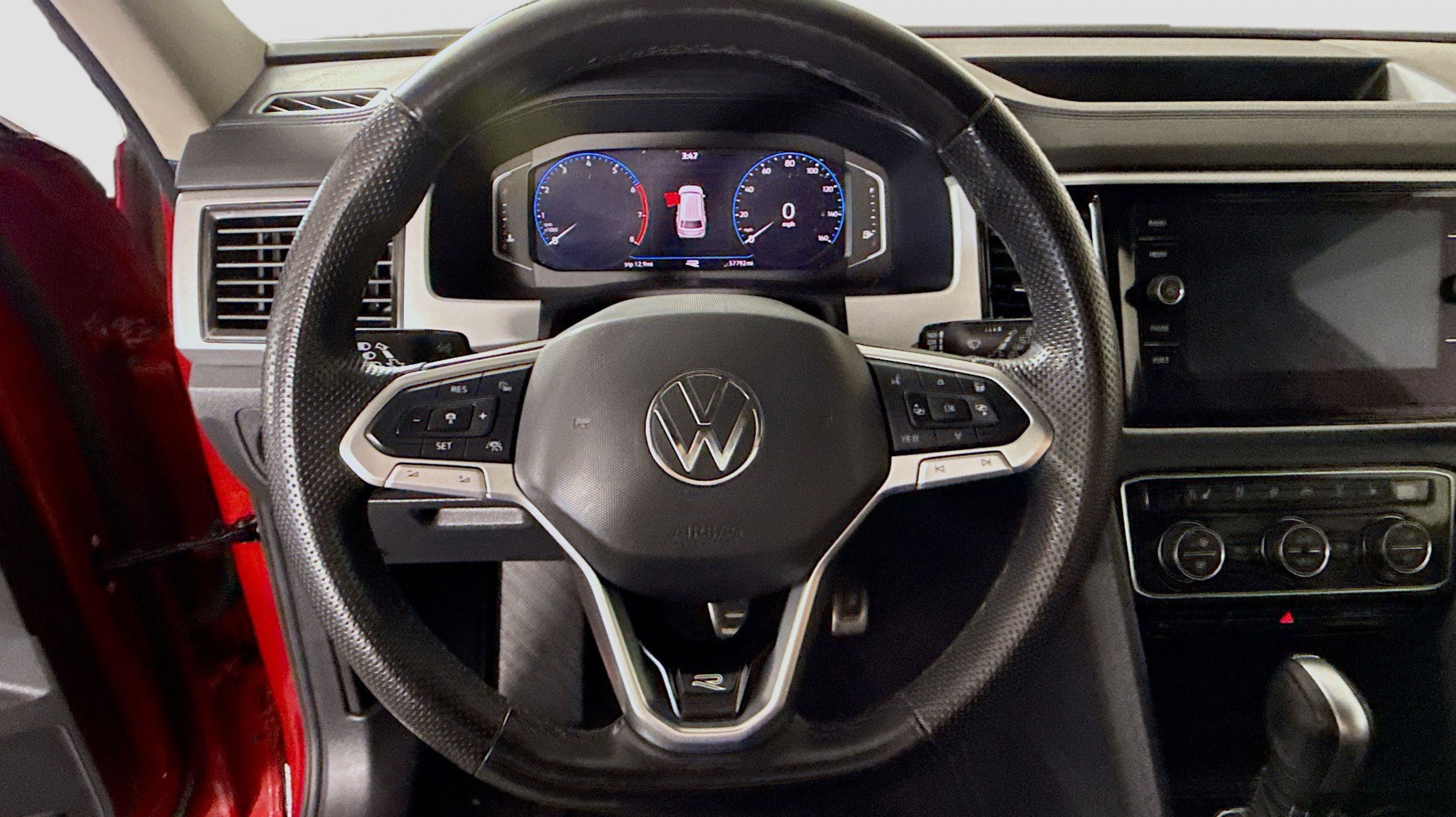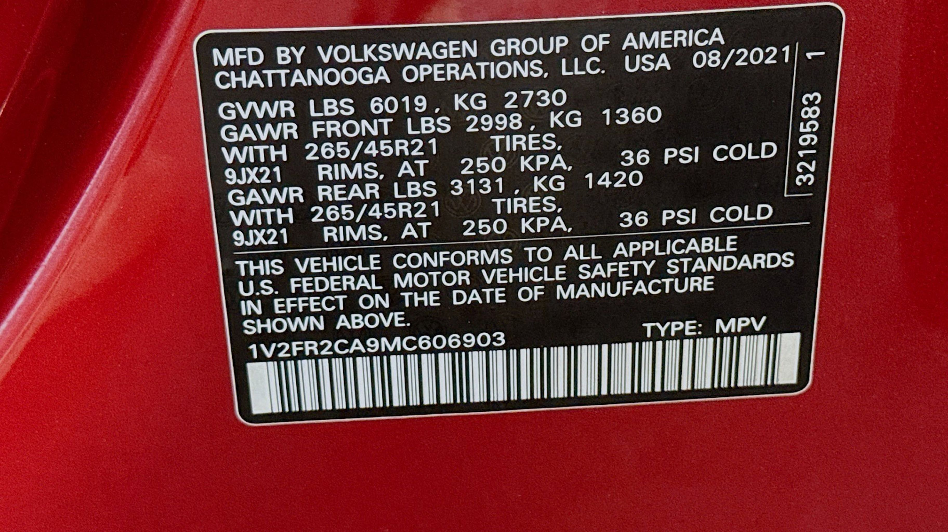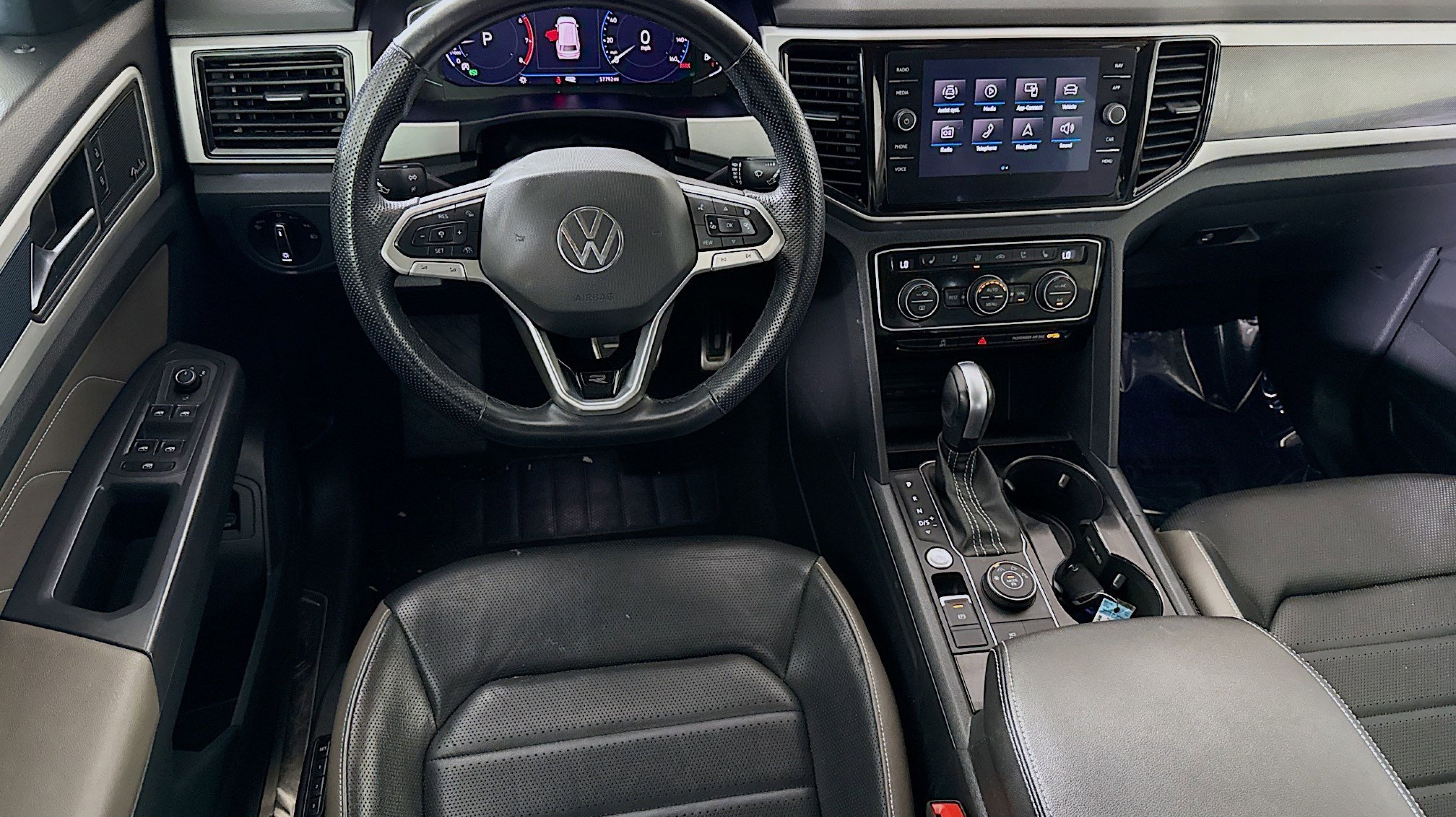 CARFAX One-Owner. 12 Speakers, 3.60 Axle Ratio, 3rd row seats: split-bench, 4-Wheel Disc Brakes, ABS brakes, Air Conditioning, Alloy wheels, Auto High-beam Headlights, Auto-dimming Rear-View mirror, Automatic temperature control, Brake assist, Bumpers: body-color, Compass, Delay-off headlights, Driver door bin, Driver vanity mirror, Dual front impact airbags, Dual front side impact airbags, Electronic Stability Control, Emergency communication system: VW Car-Net services (capabilities require enrollment or subscription), Four wheel independent suspension, Front anti-roll bar, Front Bucket Seats, Front Center Armrest, Front dual zone A/C, Front fog lights, Front reading lights, Fully automatic headlights, Heated door mirrors, Heated front seats, Heated rear seats, Heated steering wheel, Htd/Actively Ventilated Comfort Front Sport Seats, Illuminated entry, Leather Shift Knob, Low tire pressure warning, Memory seat, Navigation System, Occupant sensing airbag, Outside temperature display, Overhead airbag, Overhead console, Panic alarm, Passenger door bin, Passenger vanity mirror, Perforated Vienna Leather Seating Surfaces, Power door mirrors, Power driver seat, Power Liftgate, Power moonroof, Power passenger seat, Power steering, Power windows, Radio data system, Rain sensing wipers, Rear air conditioning, Rear anti-roll bar, Rear audio controls, Rear reading lights, Rear seat center armrest, Rear window defroster, Rear window wiper, Remote keyless entry, Roof rack: rails only, Security system, Speed control, Speed-sensing steering, Split folding rear seat, Spoiler, Sport steering wheel, Standard Suspension, Steering wheel mounted audio controls, Tachometer, Telescoping steering wheel, Tilt steering wheel, Traction control, Trip computer, Turn signal indicator mirrors, Variably intermittent wipers, Ventilated front seats, Wheels: 21 2-Tone Machined Alloy. Odometer is 9219 miles below market average!