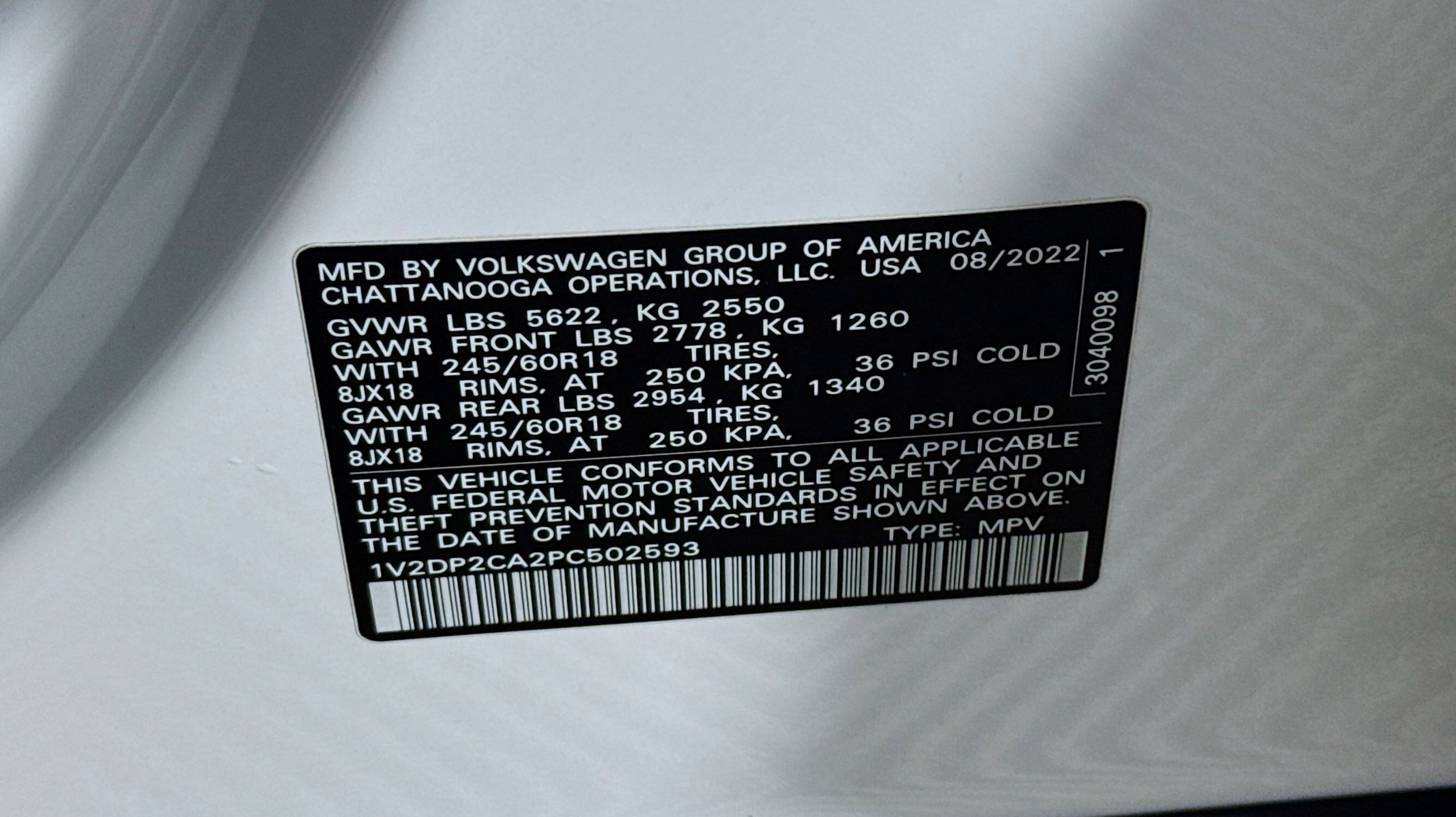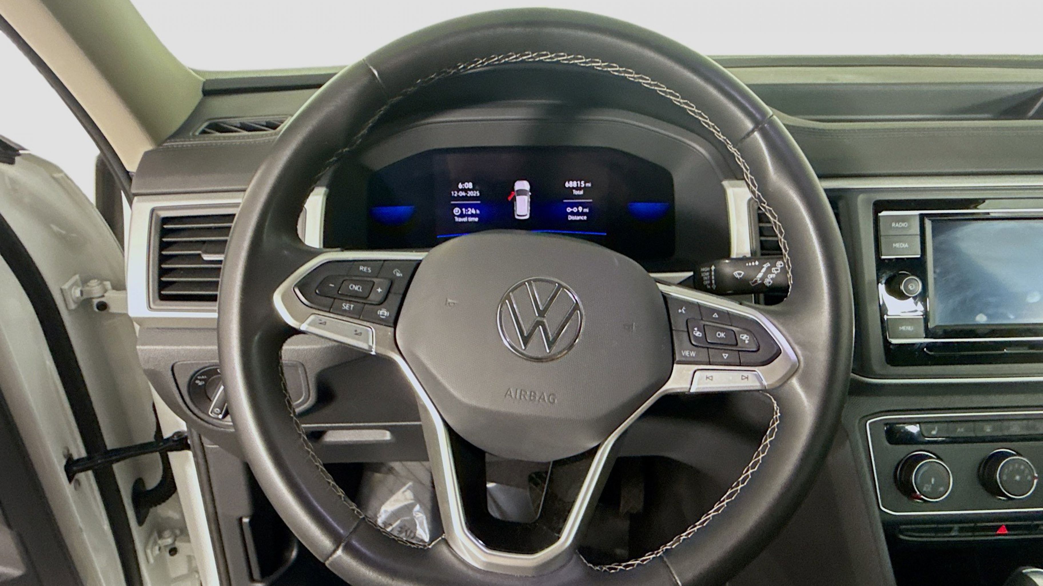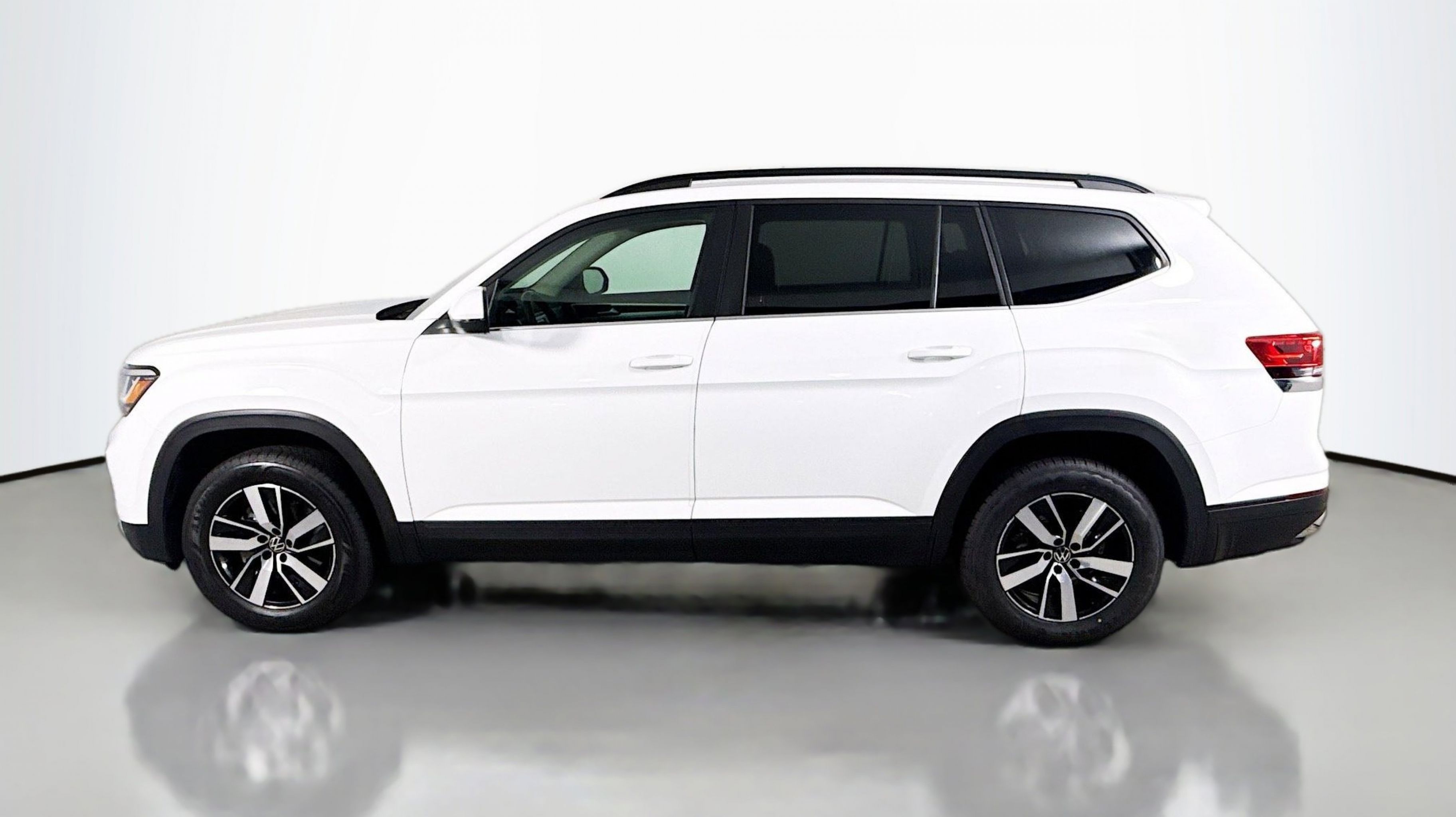 Tourmaline Blue Metallic 2023 Volkswagen Atlas 2.0T SE FWD 8-Speed Automatic with Tiptronic 2.0L TSI 3.60 Axle Ratio, 3rd row seats: split-bench, 4-Wheel Disc Brakes, 6 Speakers, ABS brakes, Air Conditioning, Alloy wheels, Auto-dimming Rear-View mirror, Brake assist, Bumpers: body-color, Carpeted Mats - Bench Seats, Carpeted Mats Kit - Bench Seat, Compass, Delay-off headlights, Driver door bin, Driver vanity mirror, Dual front impact airbags, Dual front side impact airbags, Electronic Stability Control, Emergency communication system: VW Car-Net Safe & Secure 5-year, Exterior Parking Camera Rear, First Aid Kit, Four wheel independent suspension, Front anti-roll bar, Front Bucket Seats, Front Center Armrest, Front fog lights, Front reading lights, Fully automatic headlights, Heated Comfort Front Bucket Seats, Heated door mirrors, Heated front seats, Heavy Duty Trunk Liner w/VW CarGo Blocks, Illuminated entry, Low tire pressure warning, Occupant sensing airbag, Outside temperature display, Overhead airbag, Overhead console, Panic alarm, Passenger door bin, Passenger vanity mirror, Perforated V-Tex Leatherette Seating Surfaces, Power door mirrors, Power driver seat, Power steering, Power windows, Radio data system, Radio: Composition Color w/6.5 Touchscreen, Rain sensing wipers, Rear anti-roll bar, Rear reading lights, Rear seat center armrest, Rear window defroster, Rear window wiper, Remote keyless entry, Security system, Speed control, Speed-sensing steering, Split folding rear seat, Spoiler, Standard Suspension, Steering wheel mounted audio controls, Tachometer, Telescoping steering wheel, Tilt steering wheel, Traction control, Trip computer, Turn signal indicator mirrors, Variably intermittent wipers, VW Care, Wheels: 18 x 8J 5-Spoke 2-Tone Machined Alloy.