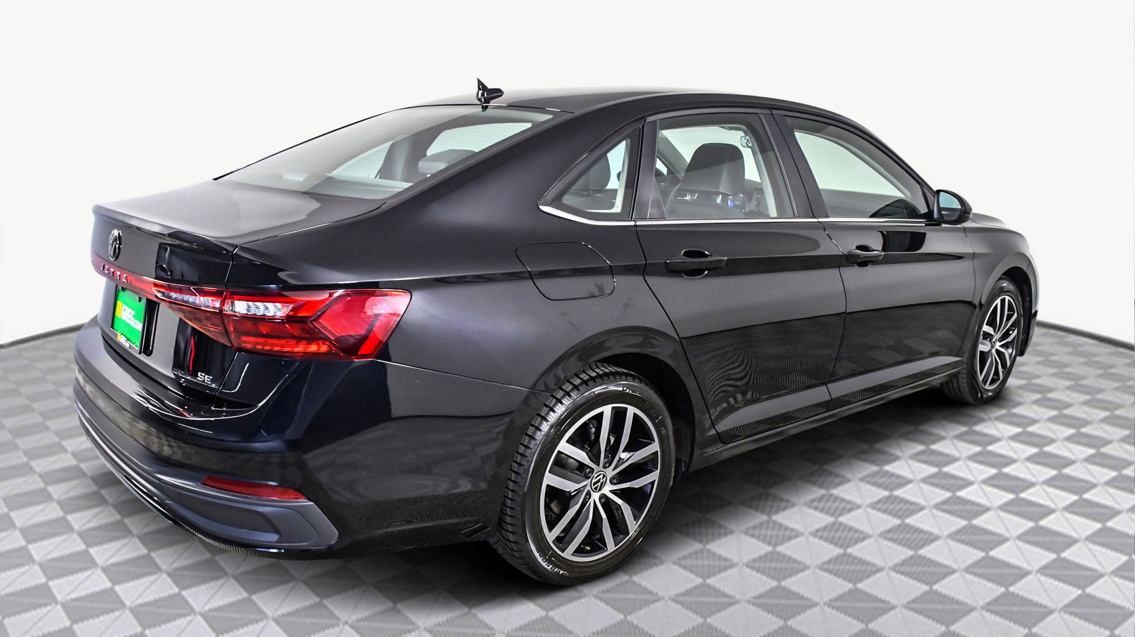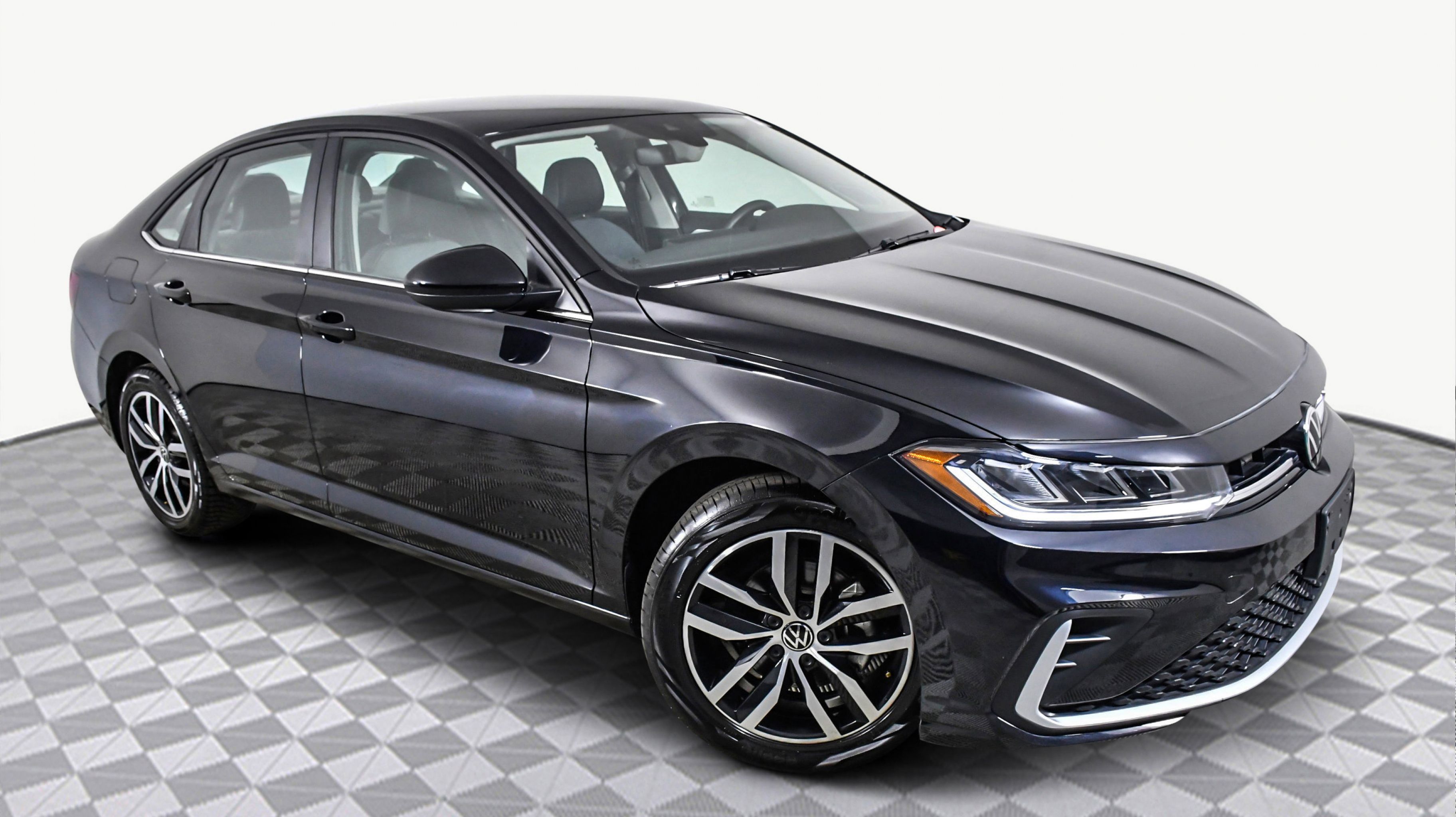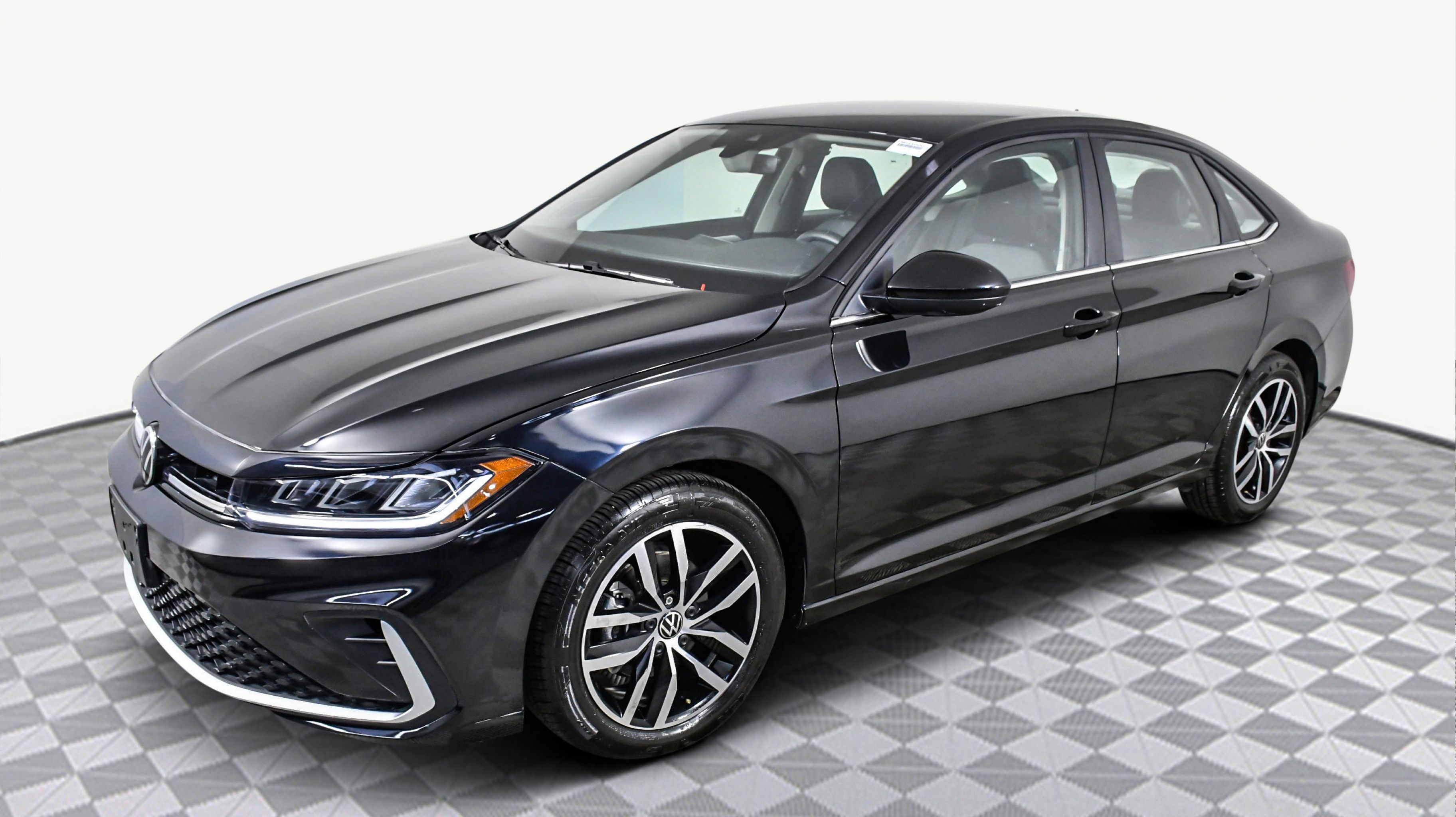 Deep Black Pearl 2025 Volkswagen Jetta 1.5T SE FWD 8-Speed Automatic with Tiptronic 1.5L I-4 DI DOHC Turbocharged Sevilla/Titan Black w/Vienna Leather Seat Trim, 4-Wheel Disc Brakes, 6 Speakers, ABS brakes, Active Blind Spot Monitor, Air Conditioning, Alloy wheels, AM/FM radio: SiriusXM with 360L, Auto-dimming Rear-View mirror, Automatic temperature control, Brake assist, Bumpers: body-color, CloudTex & V-Tex Leatherette Seat Trim, Delay-off headlights, Driver door bin, Driver vanity mirror, Dual front impact airbags, Dual front side impact airbags, Electronic Stability Control, Emergency communication system: VW Car-Net Safe & Secure 5-year, Exterior Parking Camera Rear, Front anti-roll bar, Front Bucket Seats, Front Center Armrest, Front dual zone A/C, Front wheel independent suspension, Fully automatic headlights, Heated door mirrors, Heated Front Seats, Heated front seats, Illuminated entry, Leather Shift Knob, Leather steering wheel, Low tire pressure warning, Occupant sensing airbag, Outside temperature display, Overhead airbag, Overhead console, Panic alarm, Passenger door bin, Passenger vanity mirror, Power door mirrors, Power driver seat, Power steering, Power windows, Radio data system, Radio: MIB3 Composition Media w/8 Touchscreen, Rain sensing wipers, Rear anti-roll bar, Rear reading lights, Rear seat center armrest, Rear window defroster, Remote keyless entry, Speed control, Speed-sensing steering, Split folding rear seat, Steering wheel mounted audio controls, Tachometer, Telescoping steering wheel, Tilt steering wheel, Traction control, Trip computer, Variably intermittent wipers, Wheels: 17 Twin 5-Spoke 2-Tone Machined Alloy, Sevilla/Titan Black w/Vienna Leather Seat Trim.