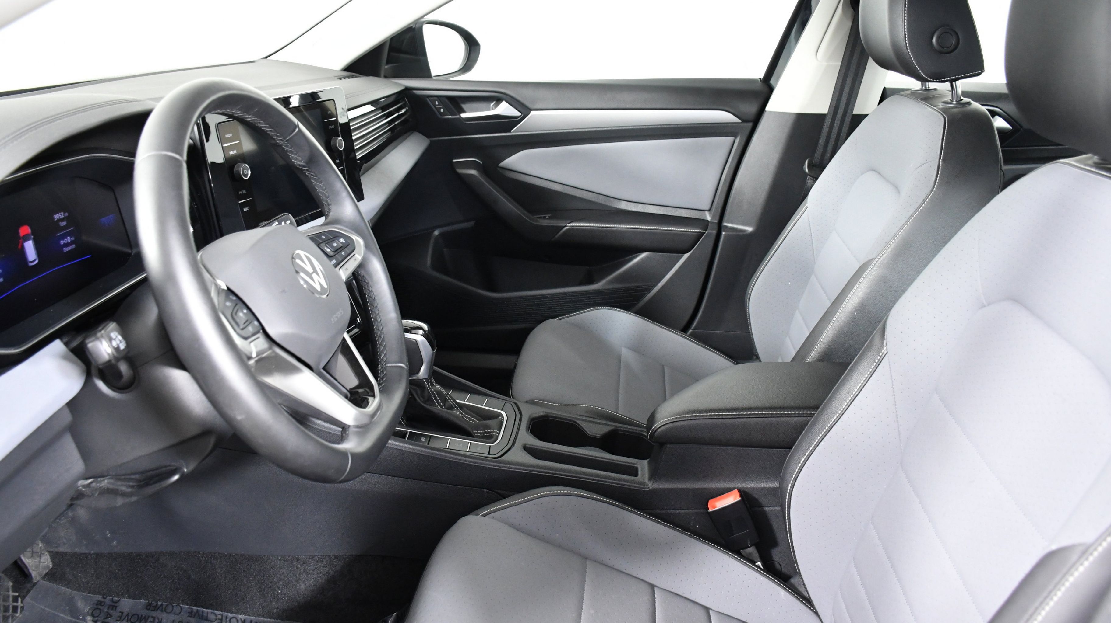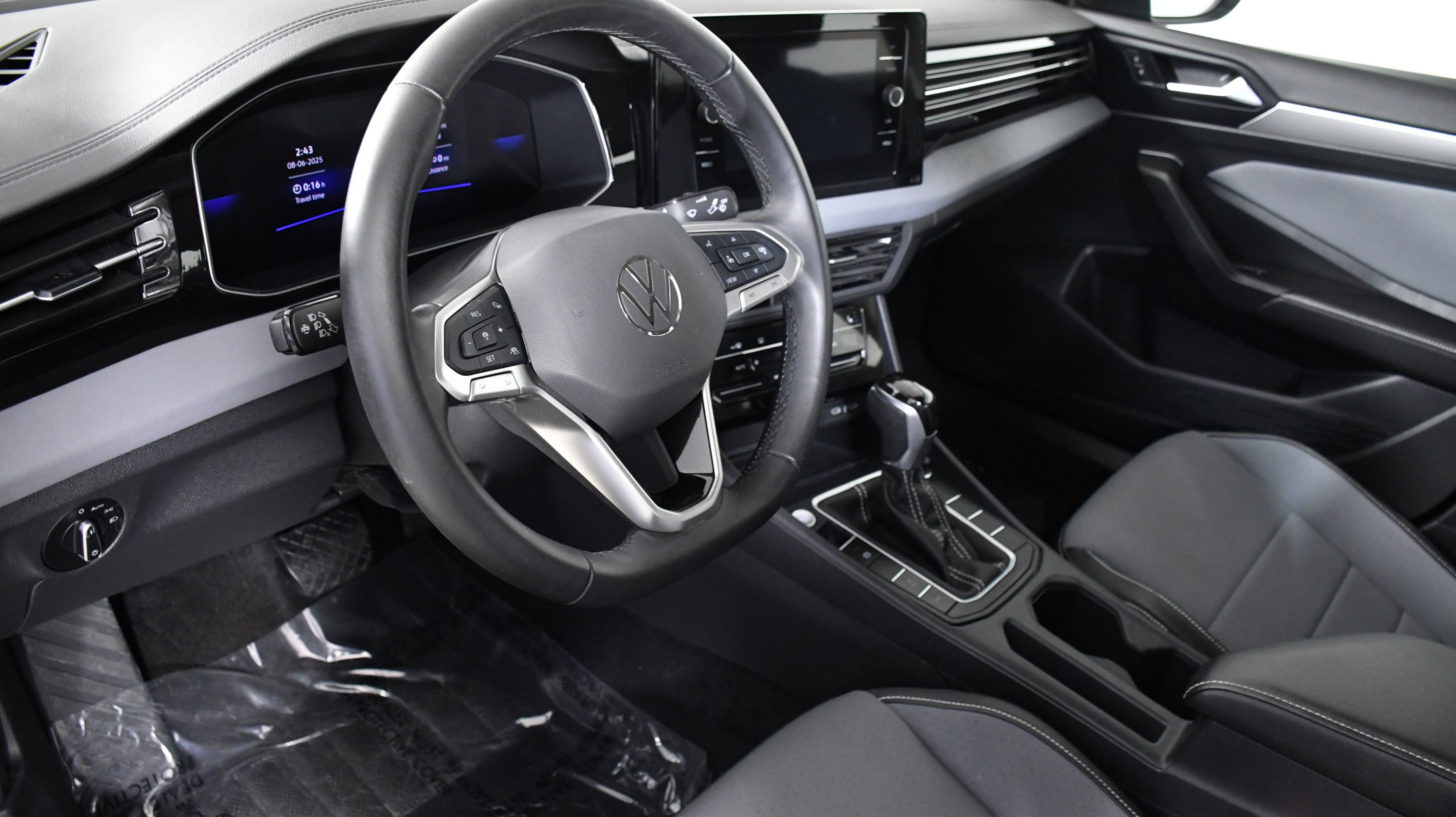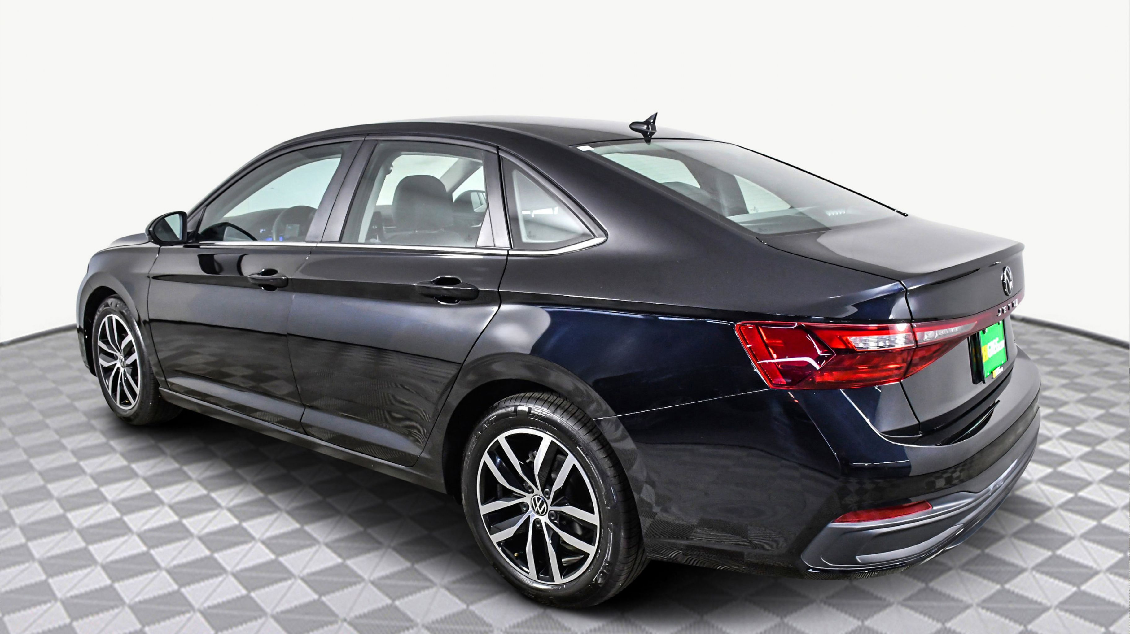 Deep Black Pearl 2025 Volkswagen Jetta 1.5T SE FWD 8-Speed Automatic with Tiptronic 1.5L I-4 DI DOHC Turbocharged Sevilla/Titan Black w/Vienna Leather Seat Trim, 4-Wheel Disc Brakes, 6 Speakers, ABS brakes, Active Blind Spot Monitor, Air Conditioning, Alloy wheels, AM/FM radio: SiriusXM with 360L, Auto-dimming Rear-View mirror, Automatic temperature control, Brake assist, Bumpers: body-color, CloudTex & V-Tex Leatherette Seat Trim, Delay-off headlights, Driver door bin, Driver vanity mirror, Dual front impact airbags, Dual front side impact airbags, Electronic Stability Control, Emergency communication system: VW Car-Net Safe & Secure 5-year, Exterior Parking Camera Rear, Front anti-roll bar, Front Bucket Seats, Front Center Armrest, Front dual zone A/C, Front wheel independent suspension, Fully automatic headlights, Heated door mirrors, Heated Front Seats, Heated front seats, Illuminated entry, Leather Shift Knob, Leather steering wheel, Low tire pressure warning, Occupant sensing airbag, Outside temperature display, Overhead airbag, Overhead console, Panic alarm, Passenger door bin, Passenger vanity mirror, Power door mirrors, Power driver seat, Power steering, Power windows, Radio data system, Radio: MIB3 Composition Media w/8 Touchscreen, Rain sensing wipers, Rear anti-roll bar, Rear reading lights, Rear seat center armrest, Rear window defroster, Remote keyless entry, Speed control, Speed-sensing steering, Split folding rear seat, Steering wheel mounted audio controls, Tachometer, Telescoping steering wheel, Tilt steering wheel, Traction control, Trip computer, Variably intermittent wipers, Wheels: 17 Twin 5-Spoke 2-Tone Machined Alloy, Sevilla/Titan Black w/Vienna Leather Seat Trim.