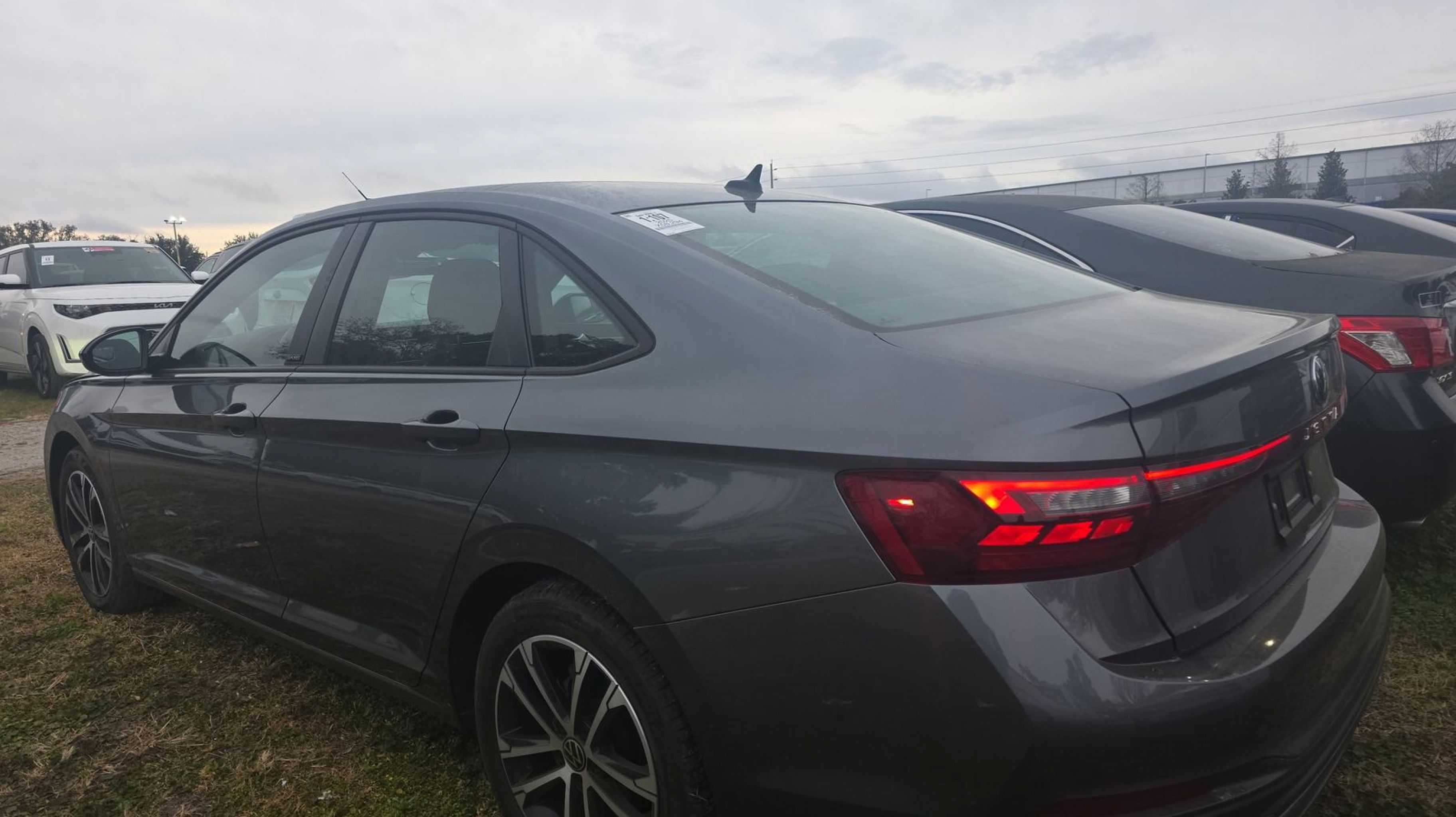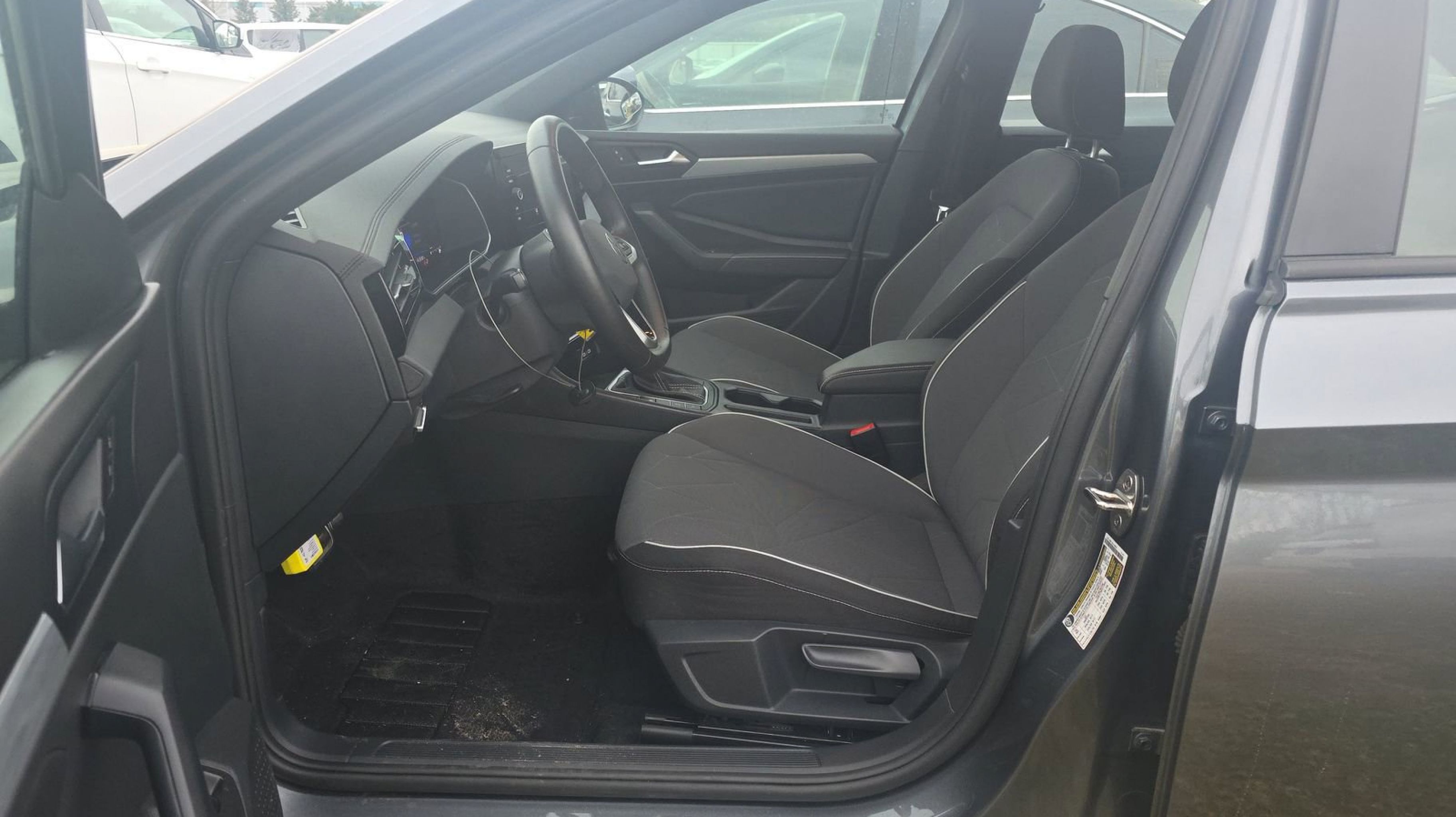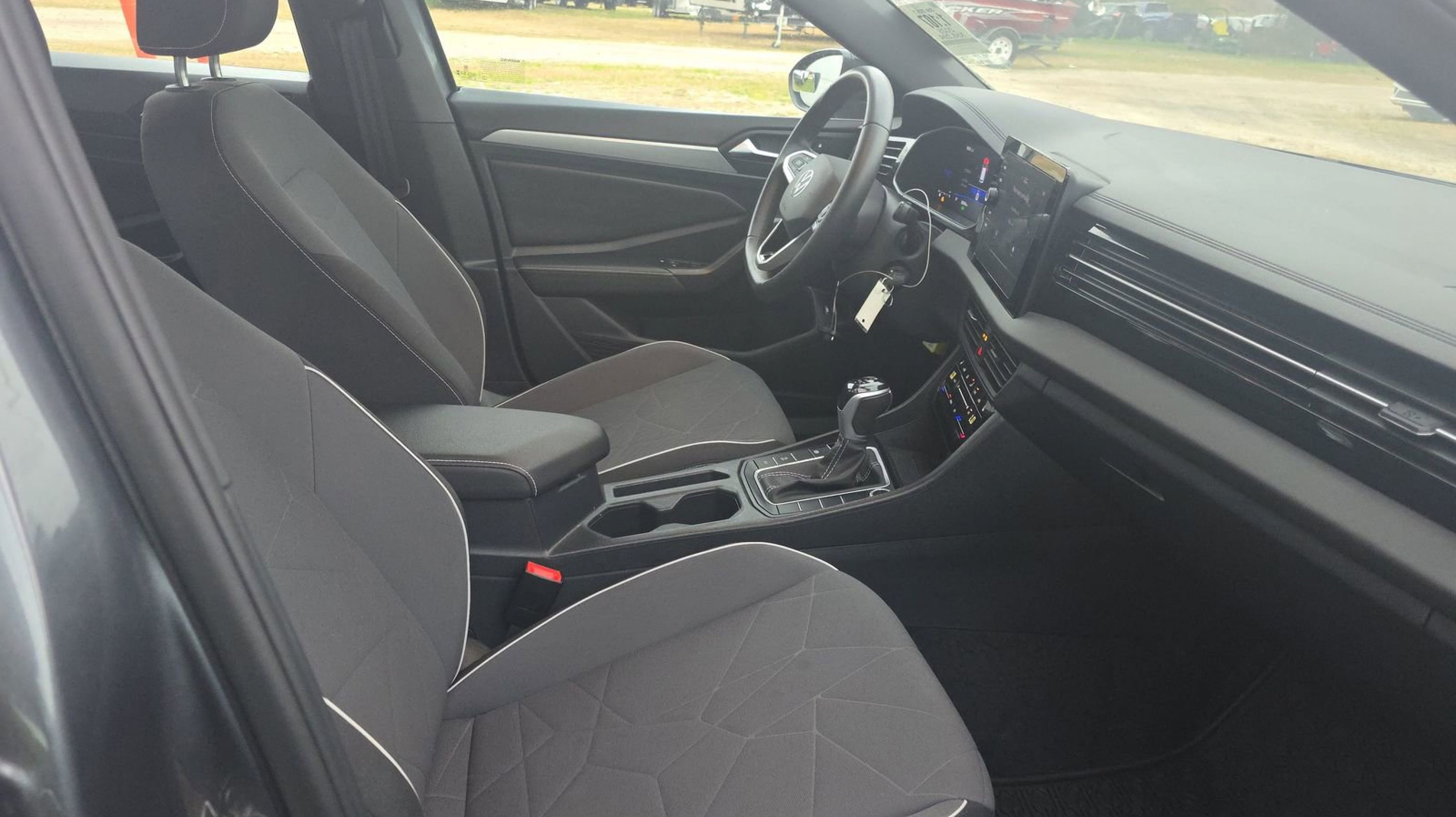 Platinum Gray Metallic 2025 Volkswagen Jetta 1.5T Sport FWD 8-Speed Automatic with Tiptronic 1.5L I-4 DI DOHC Turbocharged Titan Black w/Cloth Seat Trim, 4 Speakers, 4-Wheel Disc Brakes, ABS brakes, Active Blind Spot Monitor, Air Conditioning, Alloy wheels, Auto-dimming Rear-View mirror, Automatic temperature control, Brake assist, Bumpers: body-color, Cloth Seat Trim, Delay-off headlights, Driver door bin, Driver vanity mirror, Dual front impact airbags, Dual front side impact airbags, Electronic Stability Control, Emergency communication system: VW Car-Net Safe & Secure 5-year, Exterior Parking Camera Rear, Front anti-roll bar, Front Bucket Seats, Front Center Armrest, Front dual zone A/C, Front wheel independent suspension, Fully automatic headlights, Heated door mirrors, Heated Front Seats, Heated front seats, Illuminated entry, Leather Shift Knob, Leather steering wheel, Low tire pressure warning, Occupant sensing airbag, Outside temperature display, Overhead airbag, Overhead console, Panic alarm, Passenger door bin, Passenger vanity mirror, Power door mirrors, Power steering, Power windows, Radio data system, Radio: MIB3 Composition Color w/8 Touchscreen, Rain sensing wipers, Rear anti-roll bar, Rear reading lights, Rear seat center armrest, Rear window defroster, Remote keyless entry, Speed control, Speed-sensing steering, Split folding rear seat, Steering wheel mounted audio controls, Tachometer, Telescoping steering wheel, Tilt steering wheel, Traction control, Trip computer, Variably intermittent wipers, Wheels: 17 2-Tone Machined Alloy, Titan Black w/Cloth Seat Trim.