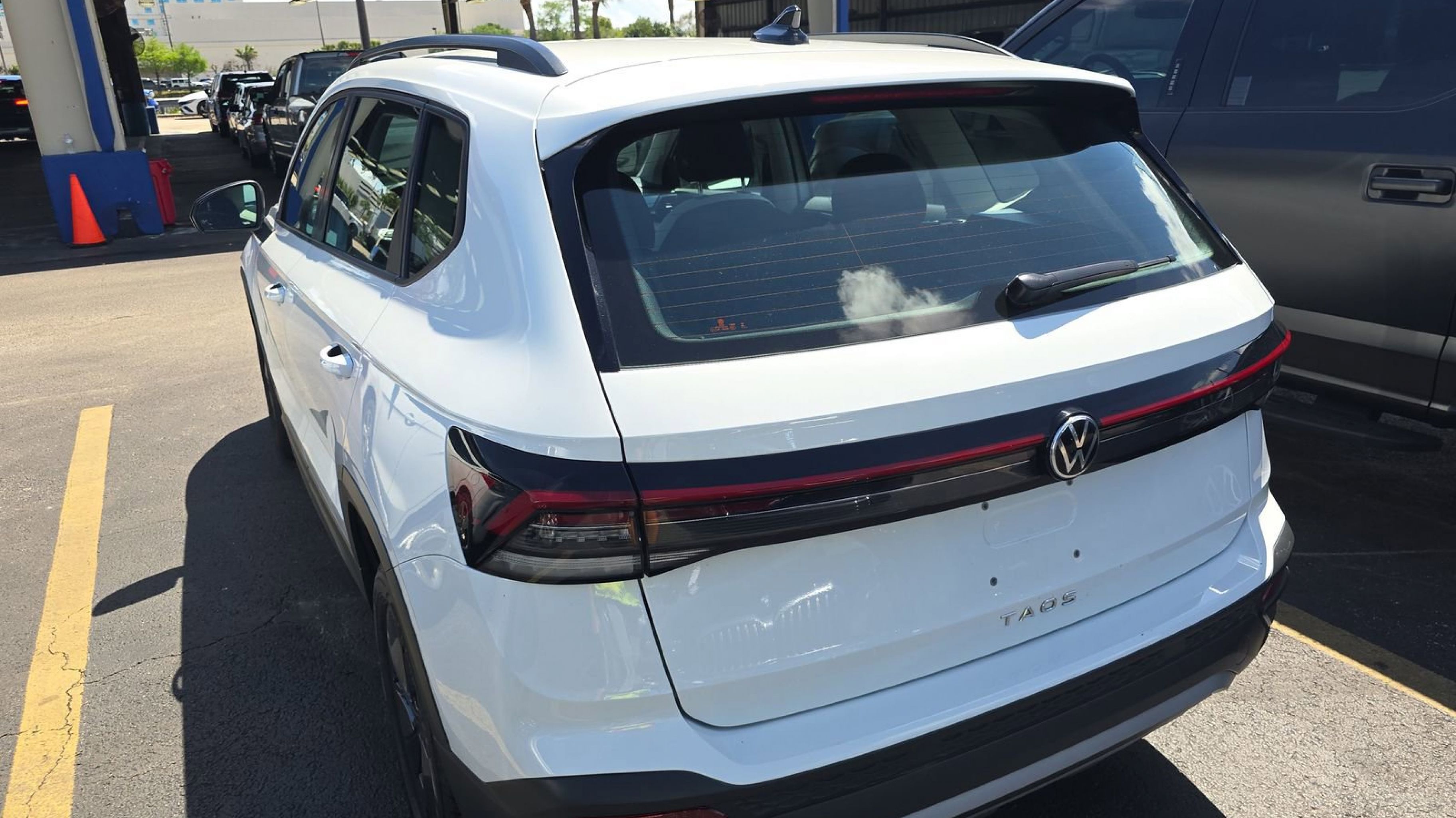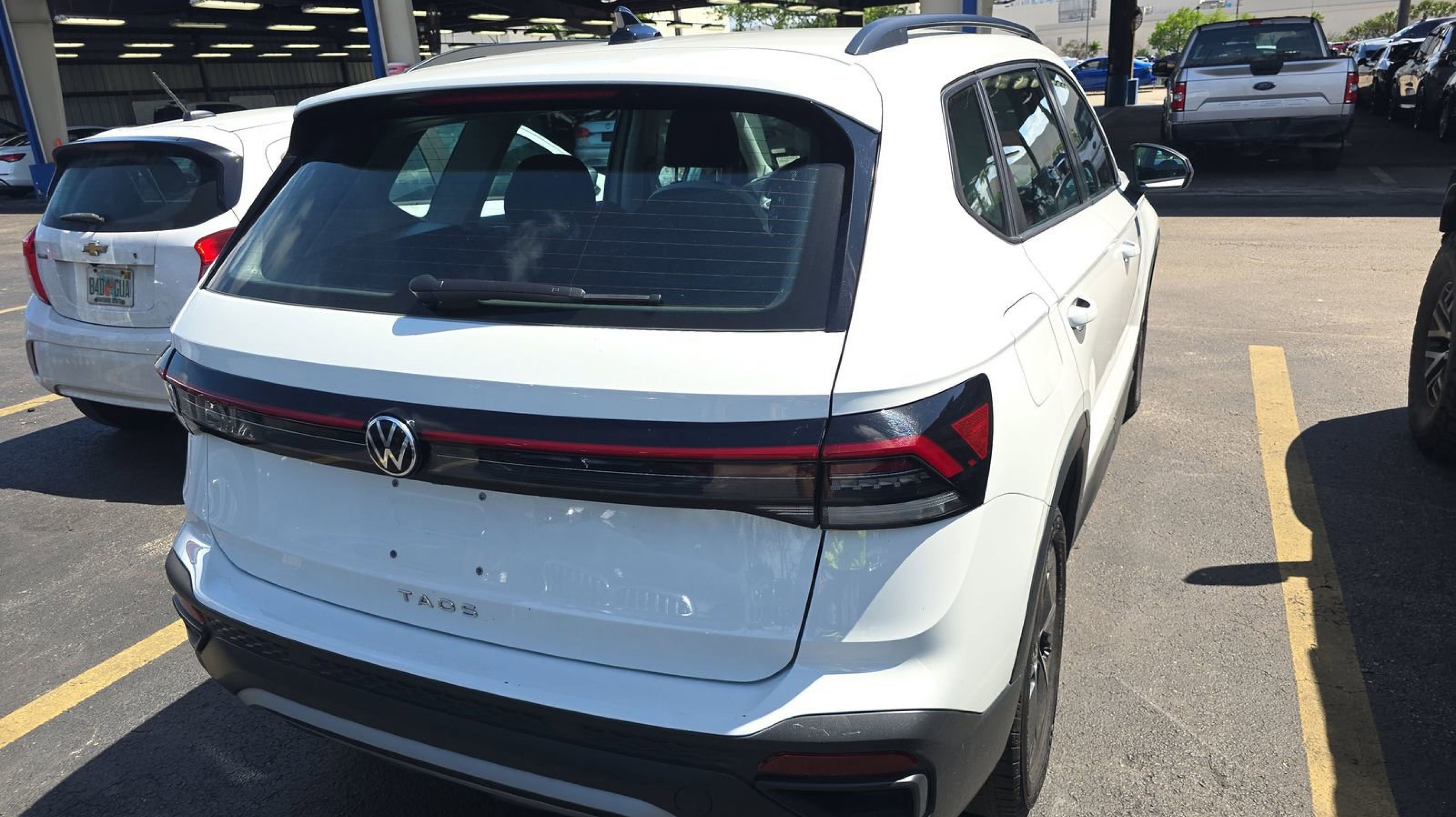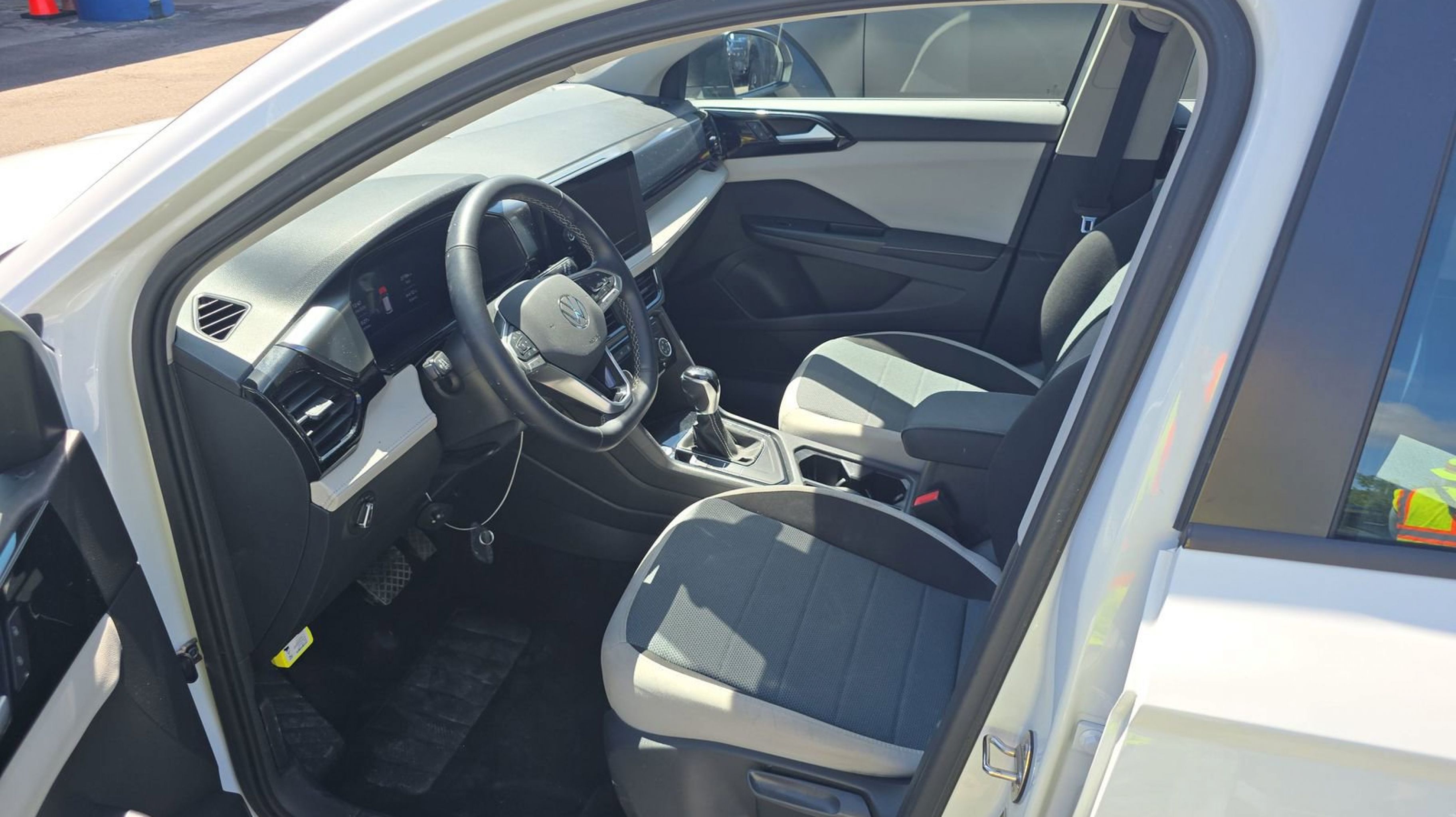 Pure White 2025 Volkswagen Taos 1.5T S FWD 8-Speed Automatic with Tiptronic 1.5L I4 Turbocharged DOHC 16V LEV3-SULEV30 174hp 4-Wheel Disc Brakes, 6 Speakers, ABS brakes, Active Blind Spot Monitor, Air Conditioning, Alloy wheels, AM/FM radio, Auto High-beam Headlights, Brake assist, Bumpers: body-color, Cloth Seating Surfaces, Compass, Delay-off headlights, Driver door bin, Driver vanity mirror, Dual front impact airbags, Dual front side impact airbags, Electronic Stability Control, Emergency communication system: VW Car-Net Safe & Secure 5-year, Exterior Parking Camera Rear, Front anti-roll bar, Front Bucket Seats, Front Center Armrest, Front reading lights, Front Strut Rear Torsion Beam Suspension, Front wheel independent suspension, Fully automatic headlights, Heated steering wheel, Illuminated entry, Leather Shift Knob, Low tire pressure warning, Occupant sensing airbag, Outside temperature display, Overhead airbag, Overhead console, Panic alarm, Passenger door bin, Passenger vanity mirror, Power door mirrors, Power steering, Power windows, Radio data system, Radio: MIB3 Composition Color AM/FM, Rain sensing wipers, Rear anti-roll bar, Rear seat center armrest, Rear window defroster, Rear window wiper, Remote keyless entry, Speed control, Speed-sensing steering, Split folding rear seat, Spoiler, Steering wheel mounted audio controls, Tachometer, Telescoping steering wheel, Tilt steering wheel, Traction control, Trip computer, Variably intermittent wipers, Wheels: 17 Dark Silver Painted Alloy.