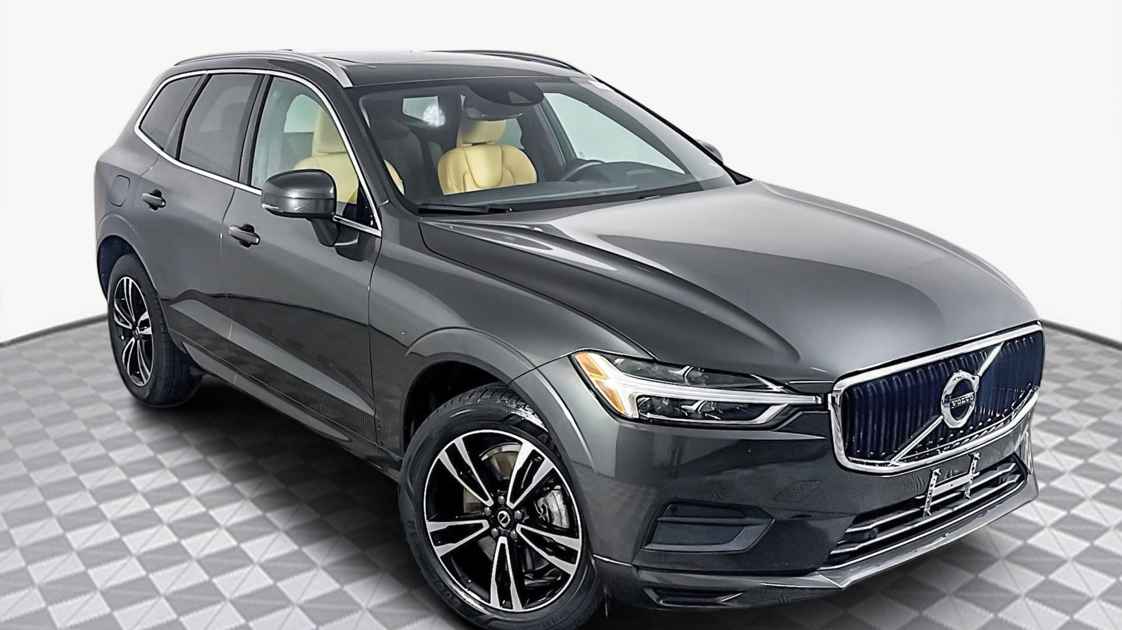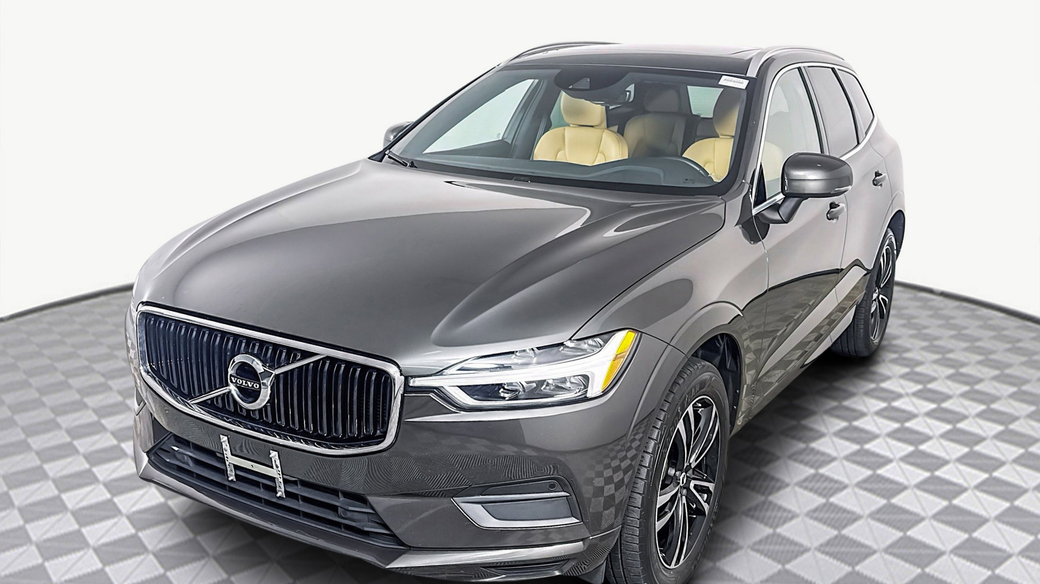Pine Gray Metallic 2020 Volvo XC60 T6 Momentum AWD Automatic with Geartronic I4 AWD, 10 Speakers, 4-Wheel Disc Brakes, ABS brakes, Air Conditioning, Alloy wheels, AM/FM radio: SiriusXM, Anti-whiplash front head restraints, Apple CarPlay/Android Auto, Auto High-beam Headlights, Auto-dimming Rear-View mirror, Automatic temperature control, Brake assist, Bumpers: body-color, Delay-off headlights, Driver door bin, Driver vanity mirror, Dual front impact airbags, Dual front side impact airbags, Electronic Stability Control, Emergency communication system: Volvo On-Call, Exterior Parking Camera Rear, Four wheel independent suspension, Front anti-roll bar, Front Bucket Seats, Front Center Armrest, Front dual zone A/C, Front reading lights, Fully automatic headlights, Heated door mirrors, Heated Front Comfort Seats, Heated front seats, Illuminated entry, Knee airbag, Leather Seating Surfaces, Leather Shift Knob, Low tire pressure warning, Memory seat, Occupant sensing airbag, Outside temperature display, Overhead airbag, Panic alarm, PANORAMA SUNROOF, Passenger door bin, Passenger vanity mirror, Power door mirrors, Power driver seat, Power Liftgate, Power passenger seat, Power steering, Power windows, Premium audio system: Sensus Connect, Radio data system, Radio: High Performance Audio System, Rain sensing wipers, Rear anti-roll bar, Rear fog lights, Rear Parking Sensors, Rear reading lights, Rear seat center armrest, Rear window defroster, Rear window wiper, Remote keyless entry, Security system, Speed control, Split folding rear seat, Spoiler, Steering wheel mounted audio controls, Tachometer, Telescoping steering wheel, Tilt steering wheel, Traction control, Trip computer, Turn signal indicator mirrors, Variably intermittent wipers, Wheels: 19 5-Double-Spoke Alloy, AWD.