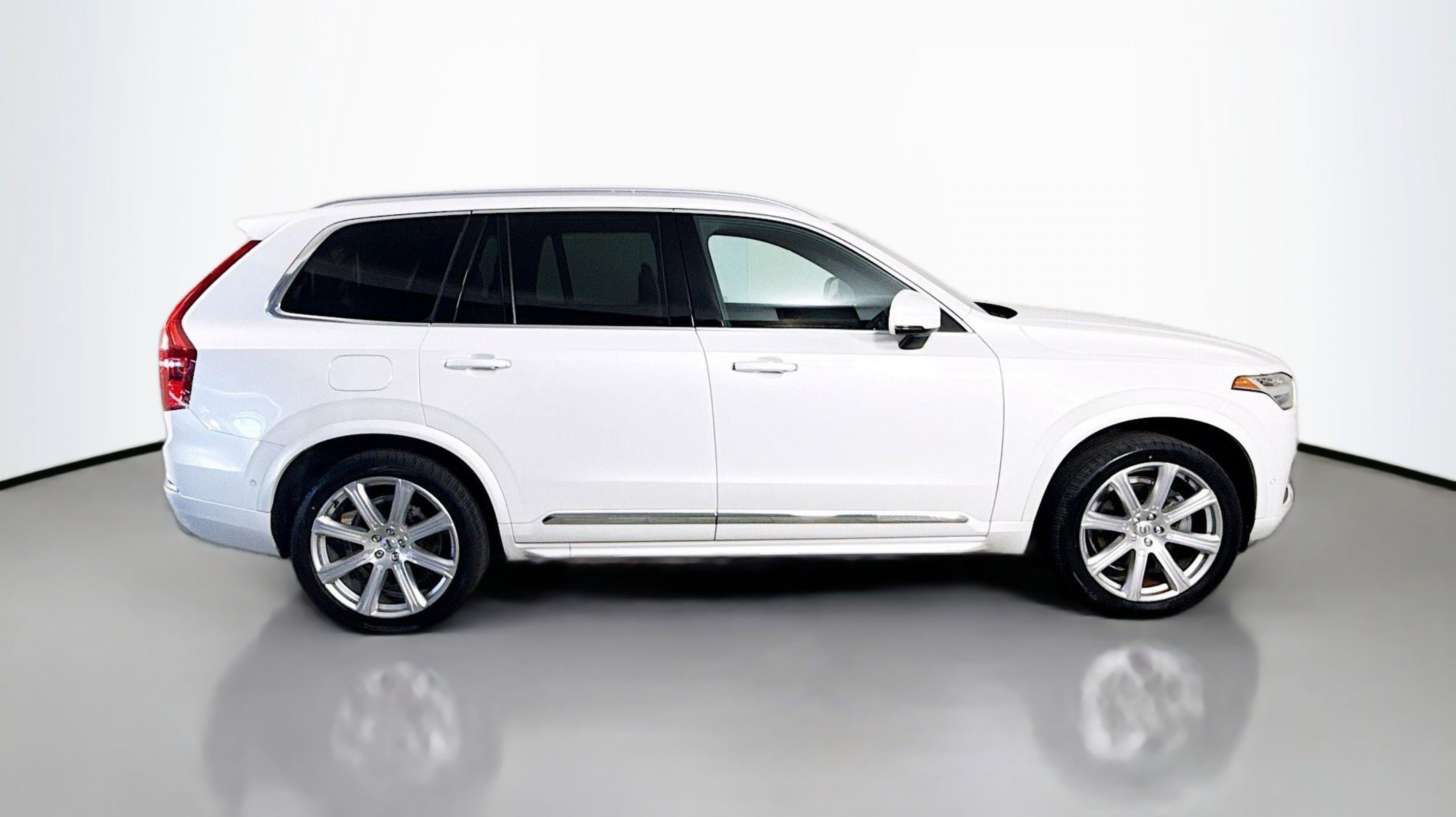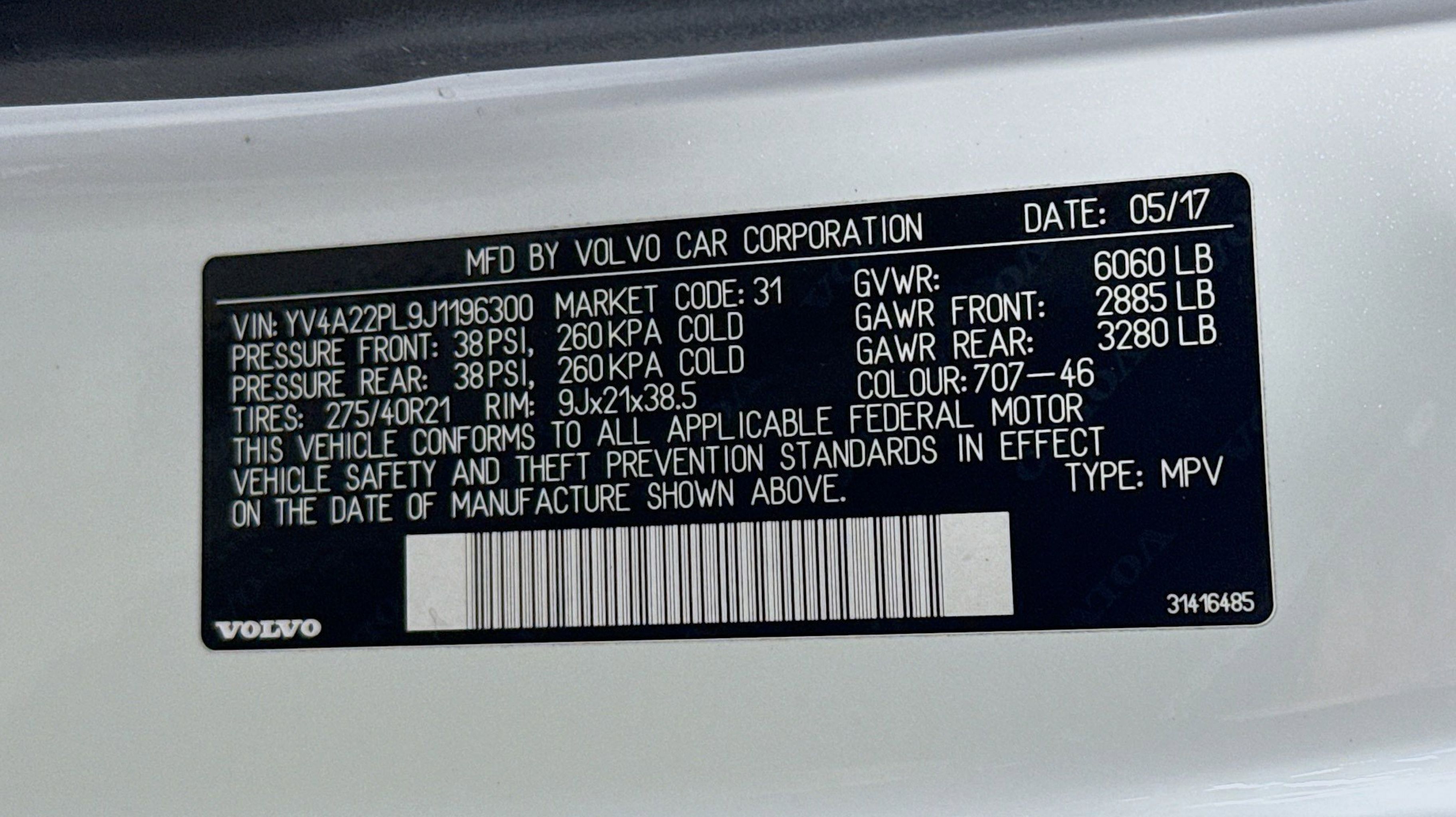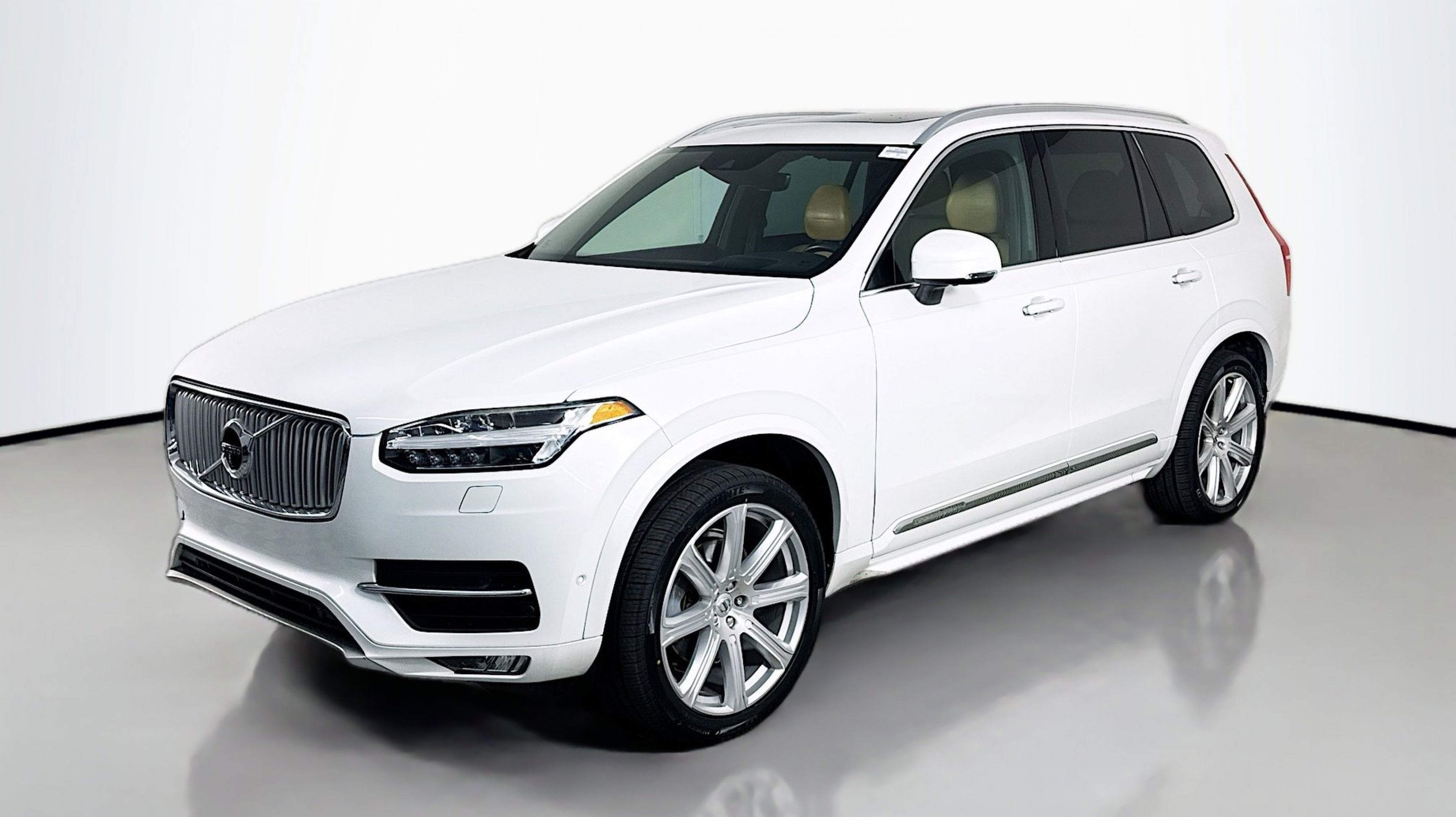 Crystal White Metallic 2018 Volvo XC90 T6 Inscription AWD Automatic with Geartronic I4 Supercharged AWD, Amber w/Leather Seating Surfaces w/Charcoal Interior, 12V Power Outlet in Cargo Area, 360-Degree Surround View Camera, Compass in Inner Rear View Mirror, Convenience Package, Grocery Bag Holder, Heated Washer Nozzles, HomeLink, Park Assist Pilot, 10 Speakers, 3rd row seats: bucket, 4-Wheel Disc Brakes, A/V remote, ABS brakes, Air Conditioning, Alloy wheels, AM/FM radio: SiriusXM, Anti-whiplash front head restraints, Apple CarPlay/Android Auto, Auto High-beam Headlights, Auto-dimming door mirrors, Auto-dimming Rear-View mirror, Automatic temperature control, Bodyside moldings, Brake assist, Bumpers: body-color, Delay-off headlights, Driver door bin, Driver vanity mirror, Dual front impact airbags, Dual front side impact airbags, Electronic Stability Control, Emergency communication system: Volvo On-Call, Exterior Parking Camera Rear, Four wheel independent suspension, Front anti-roll bar, Front Bucket Seats, Front Center Armrest w/Storage, Front dual zone A/C, Front fog lights, Front reading lights, Fully automatic headlights, Genuine wood dashboard insert, Genuine wood door panel insert, Graphical Head-Up Display, Headlight cleaning, Heated door mirrors, Heated Front Bucket Seats, Heated front seats, Heated Steering Wheel, Illuminated entry, Knee airbag, Leather Shift Knob, Low tire pressure warning, Memory seat, Nappa Leather Seating Surfaces w/Charcoal Interior, Navigation System, Occupant sensing airbag, Outside temperature display, Overhead airbag, Panic alarm, PANORAMA SUNROOF, Passenger door bin, Passenger vanity mirror, Power door mirrors, Power driver seat, Power Liftgate, Power passenger seat, Power steering, Power windows, Premium audio system: Sensus Connect, Radio data system, Radio: High Performance Audio System, Rain sensing wipers, Rear air conditioning, Rear anti-roll bar, Rear dual zone A/C, Rear fog lights, Rear Parking Sensors, Rear reading lights, Rear seat center armrest, Rear window defroster, Rear window wiper, Remote keyless entry, Roof rack: rails only, Security system, Speed control, Speed-sensing steering, Split folding rear seat, Spoiler, Steering wheel mounted audio controls, Tachometer, Telescoping steering wheel, Tilt steering wheel, Traction control, Trip computer, Turn signal indicator mirrors, Variably intermittent wipers, Ventilated front seats, Wheels: 20 10-Spoke Tinted Silver Diamond Cut, Wheels: 21 8-Spoke Silver Bright Diamond Cut, AWD, Amber w/Leather Seating Surfaces w/Charcoal Interior, 12V Power Outlet in Cargo Area, 360-Degree Surround View Camera, Compass in Inner Rear View Mirror, Convenience Package, Grocery Bag Holder, Heated Washer Nozzles, HomeLink, Park Assist Pilot.