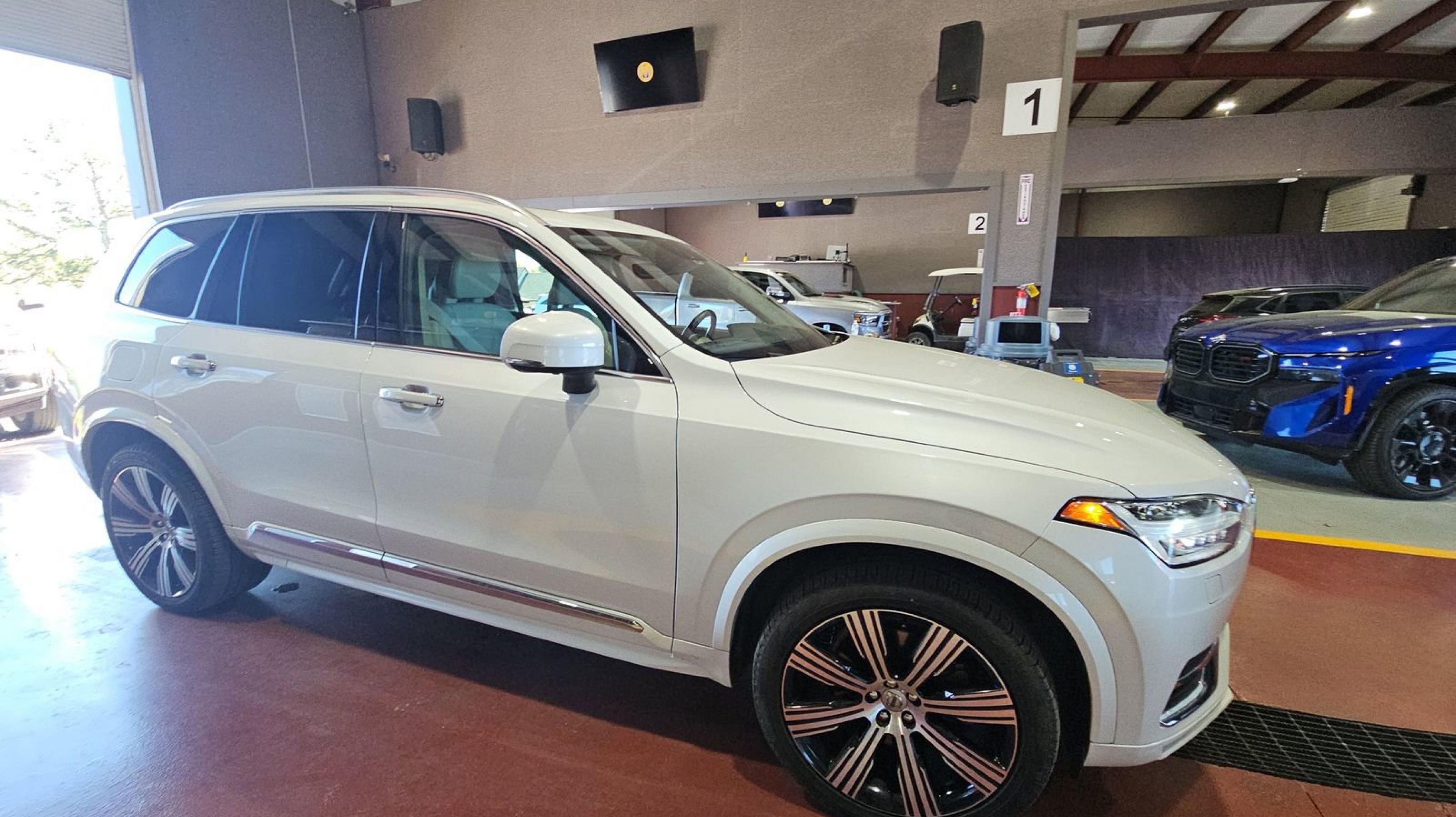Crystal White Metallic 2021 Volvo XC90 T6 Inscription AWD Automatic with Geartronic I4 Supercharged AWD, Blond w/Leather Upholstery w/Blonde Interior, 360 Degree Surroundview Camera, Advanced Package, Climate Package, Graphical Head-Up Display, Heated Rear Seats, Heated Steering Wheel, Heated Windshield Wiper Blades, 14 Speakers, 3rd row seats: bucket, 4-Wheel Disc Brakes, ABS brakes, Air Conditioning, Alloy wheels, AM/FM radio: SiriusXM, Anti-whiplash front head restraints, Apple CarPlay/Android Auto, Auto High-beam Headlights, Auto-dimming door mirrors, Auto-dimming Rear-View mirror, Automatic temperature control, Bodyside moldings, Brake assist, Bumpers: body-color, Delay-off headlights, Driver door bin, Driver vanity mirror, Dual front impact airbags, Dual front side impact airbags, Electronic Stability Control, Emergency communication system: Volvo On-Call w/4 year subscription, Exterior Parking Camera Rear, Four wheel independent suspension, Front anti-roll bar, Front Bucket Seats, Front Center Armrest w/Storage, Front dual zone A/C, Front fog lights, Front reading lights, Fully automatic headlights, Garage door transmitter: HomeLink, Genuine wood dashboard insert, Genuine wood door panel insert, harman/kardon® Speakers, Headlight cleaning, Heated & Ventilated Front Bucket Seats, Heated door mirrors, Heated front seats, Illuminated entry, Knee airbag, Leather Shift Knob, Low tire pressure warning, Memory seat, Navigation system: Sensus Navigation, Occupant sensing airbag, Outside temperature display, Overhead airbag, Panic alarm, PANORAMA SUNROOF, Passenger door bin, Passenger vanity mirror, Perforated Nappa Leather Upholstery, Power door mirrors, Power driver seat, Power Liftgate, Power passenger seat, Power steering, Power windows, Premium audio system: Sensus Connect, Radio data system, Radio: harman/kardon Premium Audio System, Rain sensing wipers, Rear air conditioning, Rear anti-roll bar, Rear dual zone A/C, Rear fog lights, Rear reading lights, Rear seat center armrest, Rear window defroster, Rear window wiper, Remote keyless entry, Roof rack: rails only, Security system, Speed control, Speed-sensing steering, Split folding rear seat, Spoiler, Steering wheel mounted audio controls, Tachometer, Telescoping steering wheel, Tilt steering wheel, Traction control, Trip computer, Turn signal indicator mirrors, Variably intermittent wipers, Ventilated front seats, Wheels: 20 10-Spoke Black Diamond Cut Alloy, AWD, Blond w/Leather Upholstery w/Blonde Interior, 360 Degree Surroundview Camera, Advanced Package, Climate Package, Graphical Head-Up Display, Heated Rear Seats, Heated Steering Wheel, Heated Windshield Wiper Blades.
